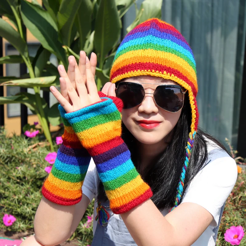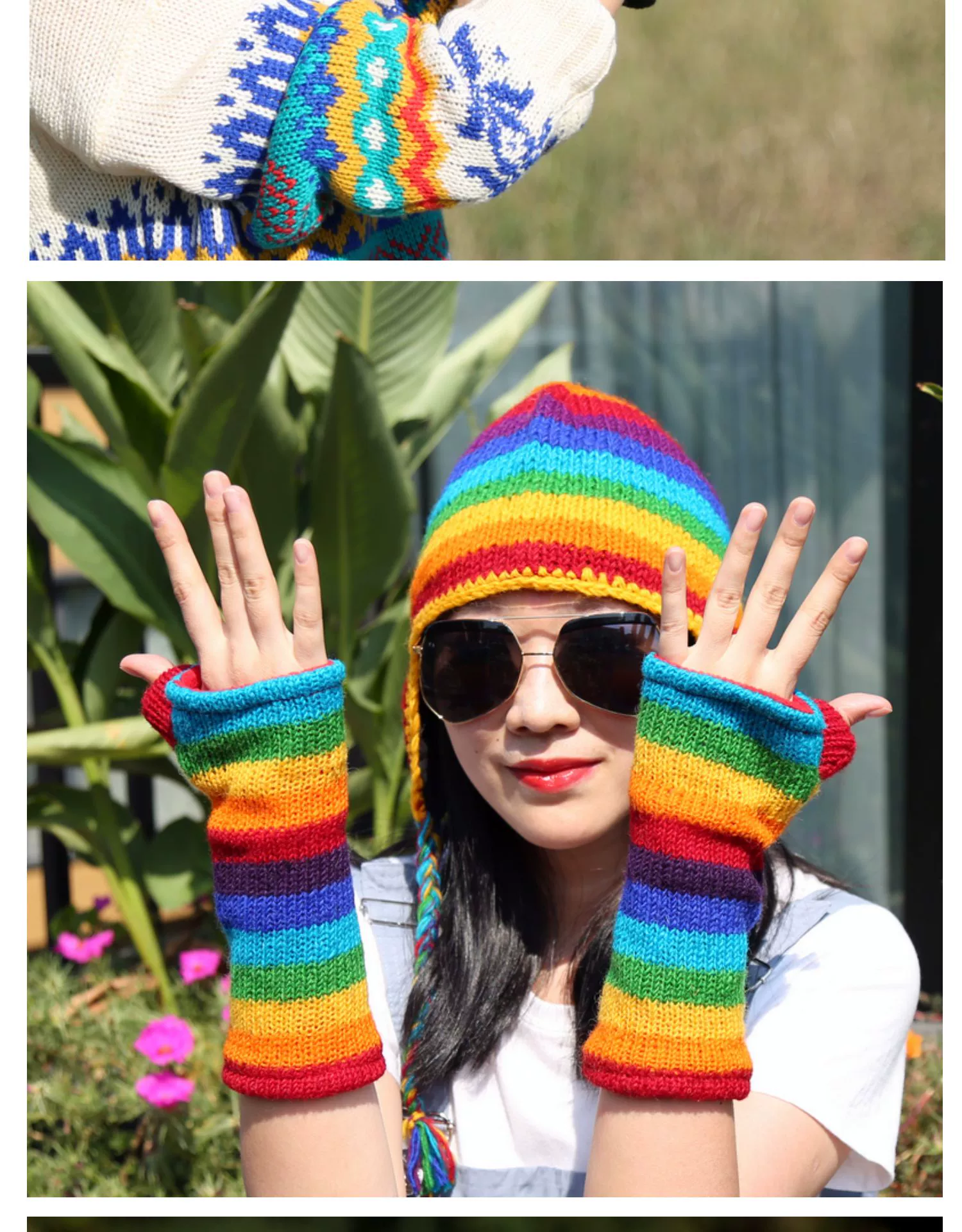 TIYIHAILEY Бесплатная доставка 2020 Новая мода Радуга Красочные зимние теплые толстые флисовые внутри женские шерстяные перчатки без пальцев