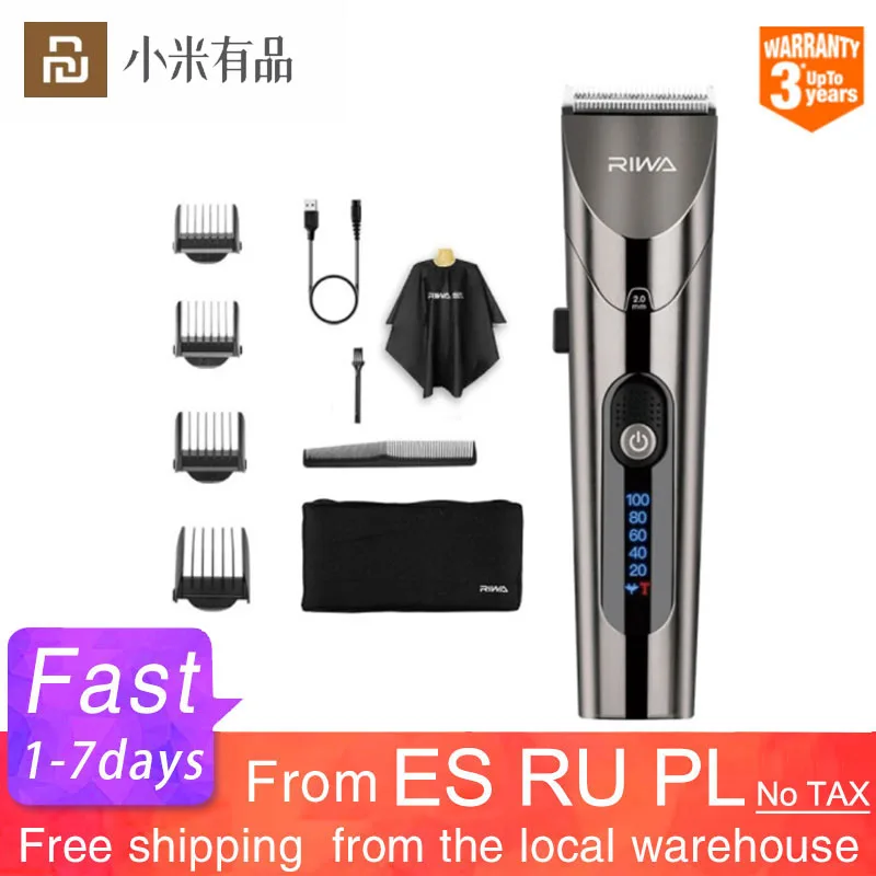 Машинка для стрижки волос YouPin RIWA RE-6305 Мужская, профессиональный электрический триммер для парикмахеров, Аккумуляторный стальной резак, светодиодный экран