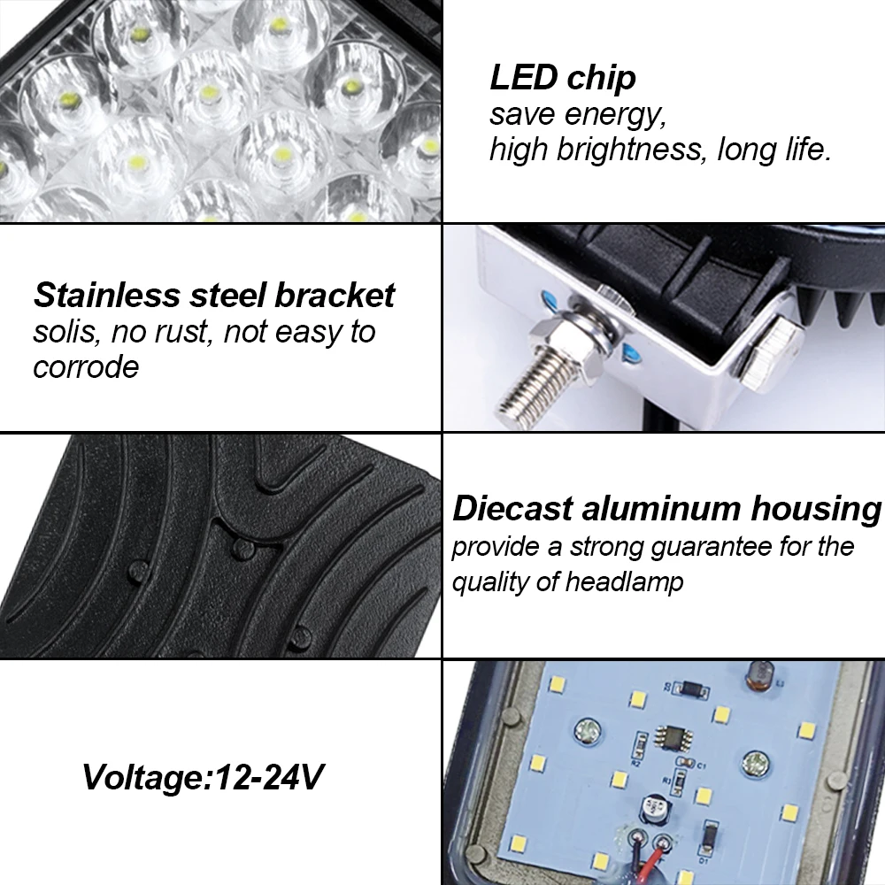 Фасветильник рабочие светодиодные, 1224 в, 24 шт., 48 Вт, для грузовиков, внедорожников