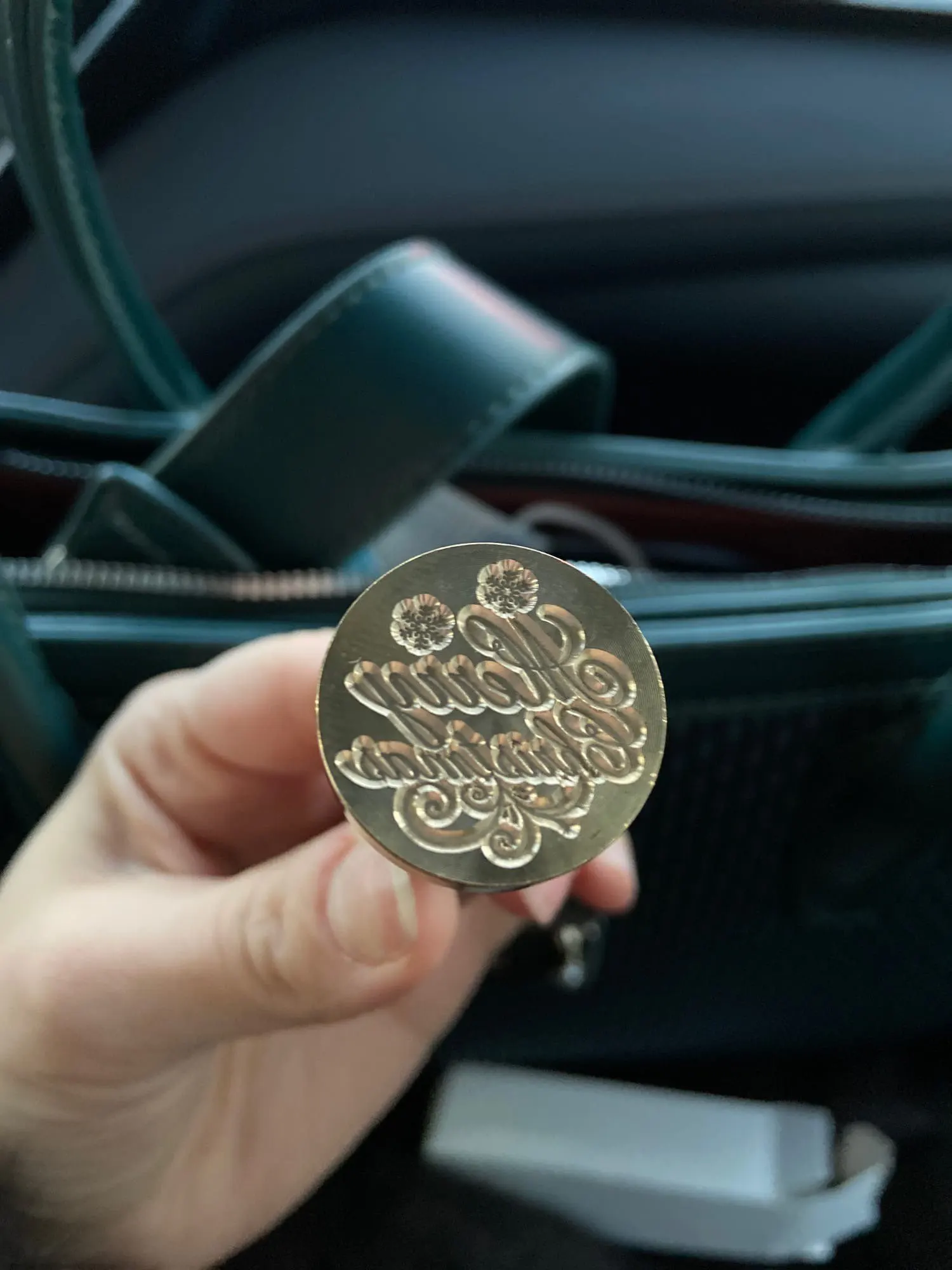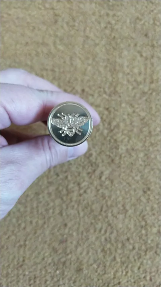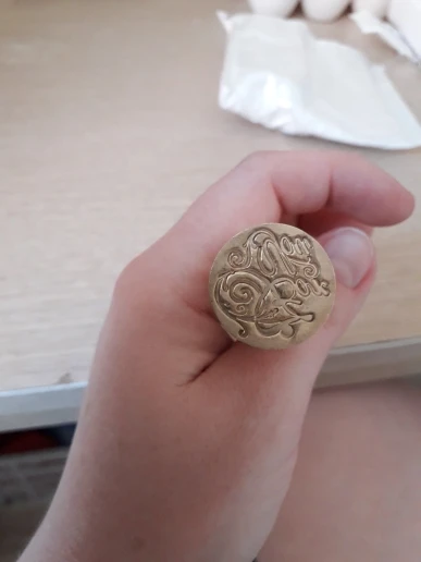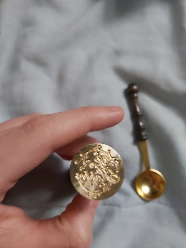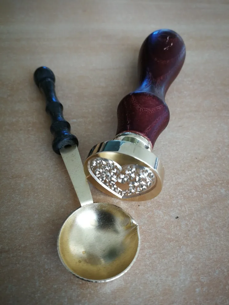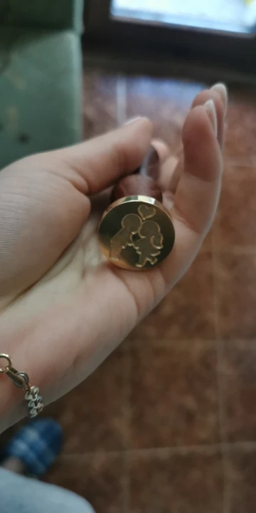 посылка пришла целая, печать с деревяной ручкой, было сложно определиться с рисунком, я выбрала корону и не прогадала