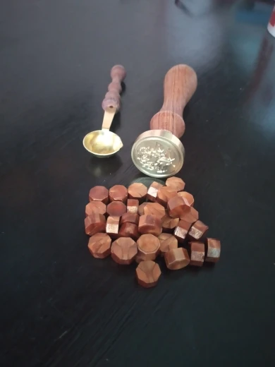 Очень хорошее уплотнение, хорошо сделано, он безупречно работает на воске и на шоколаде, лучшие вещи, чтобы охладить его немного раньше, например, поместив его минуту в морозильник или немного больше в холодильник, это позволяет оставить четкое впечатление. Рукоятку можно отвинтить и, следовательно, использовать другие уплотнения.