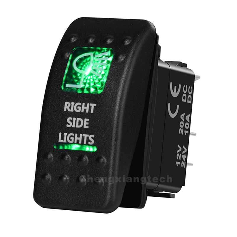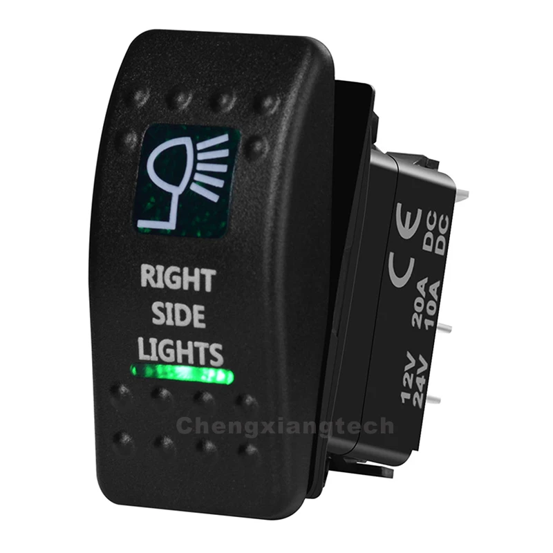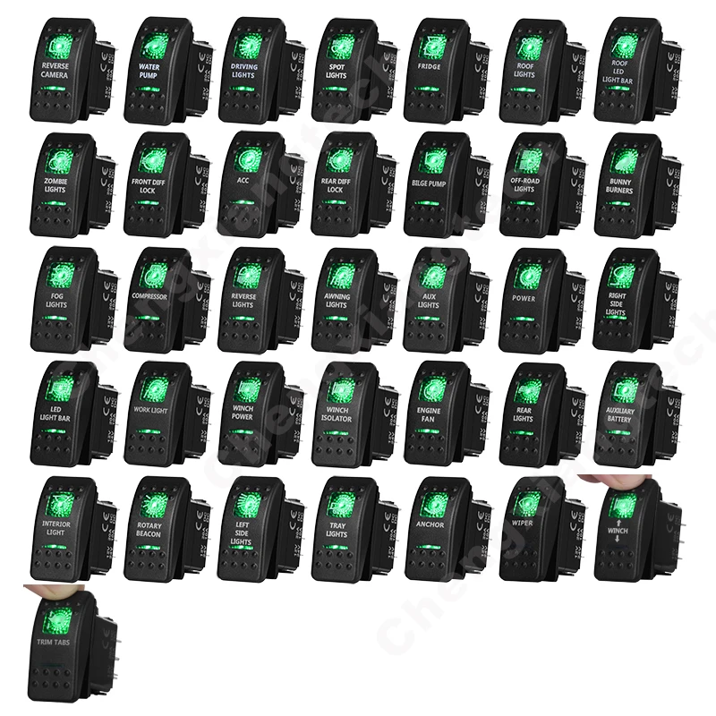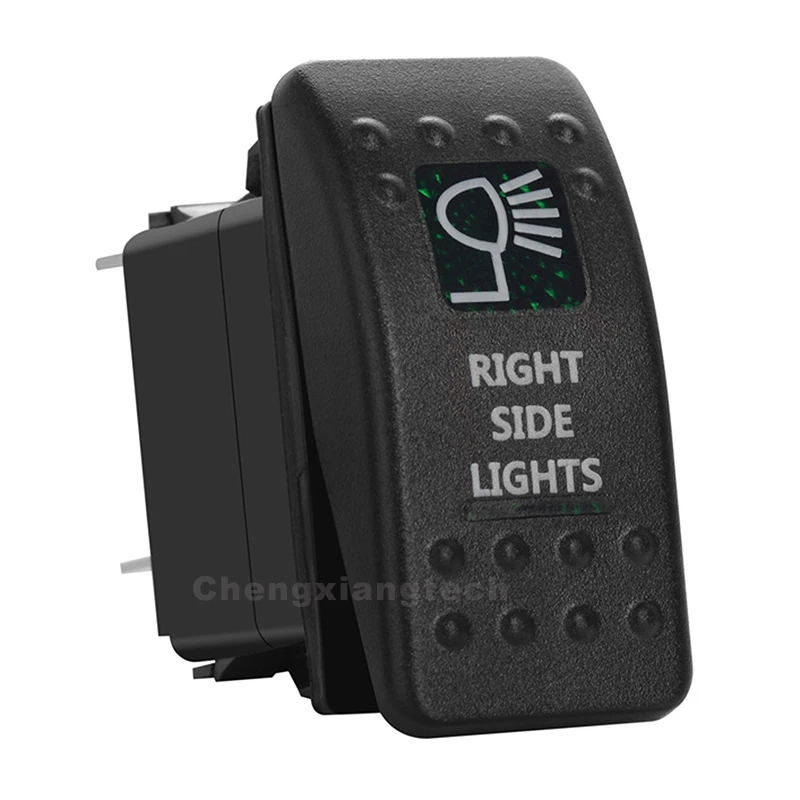 Правый боковой переключатель с 5 контактами ВКЛ.ВЫКЛ., зеленый светодиодный переключатель с подсветкой для автомобилей, лодок, грузовиков, 12 В 20 А, переключатель SPST Carling Contura