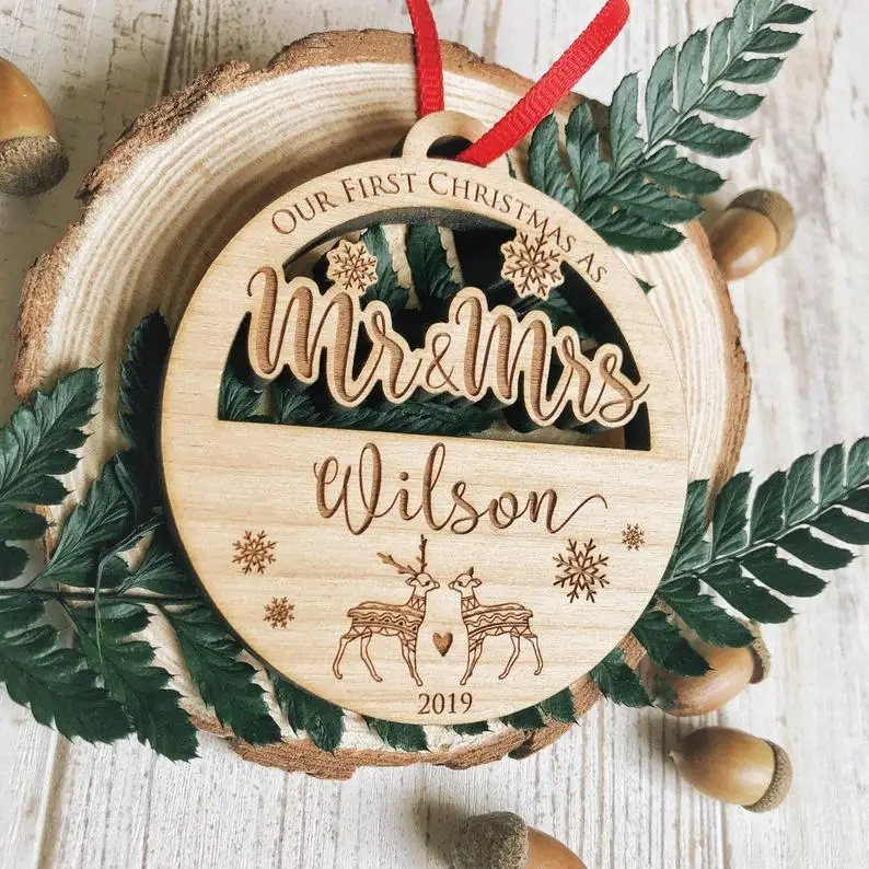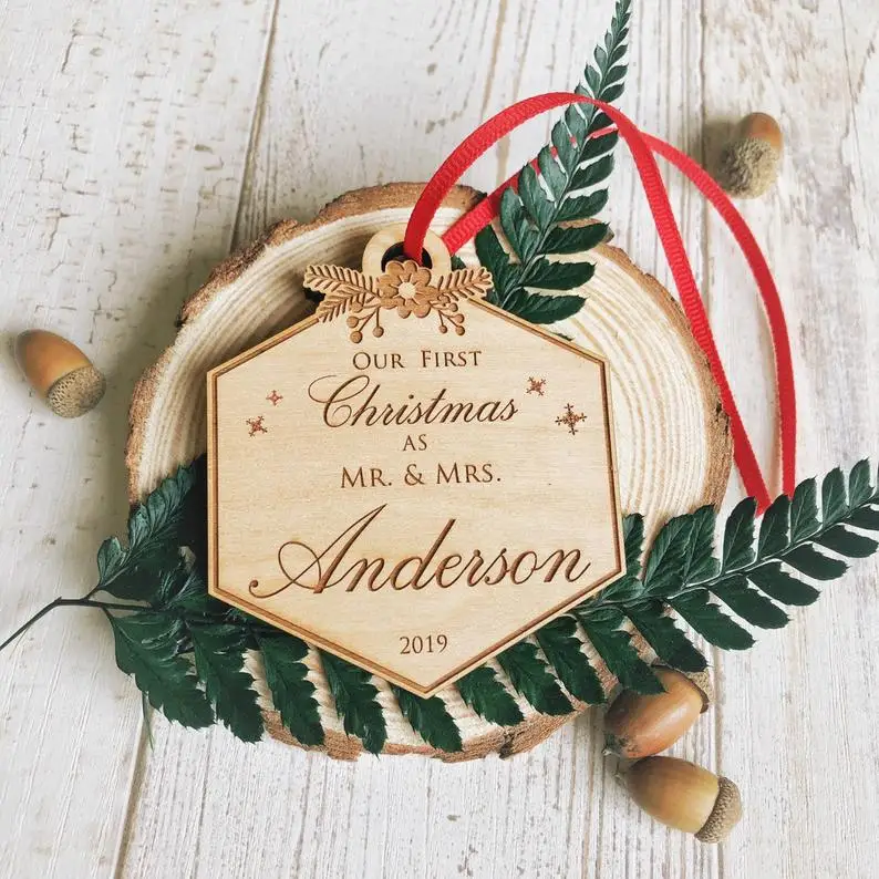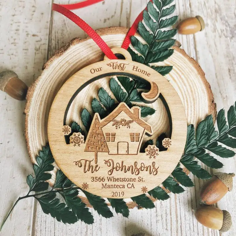 Персонализированные первое Рождество Семья орнамент Bauble 1st Рождество выгравированы деревянный праздник дерево украшения висячий дом подарок