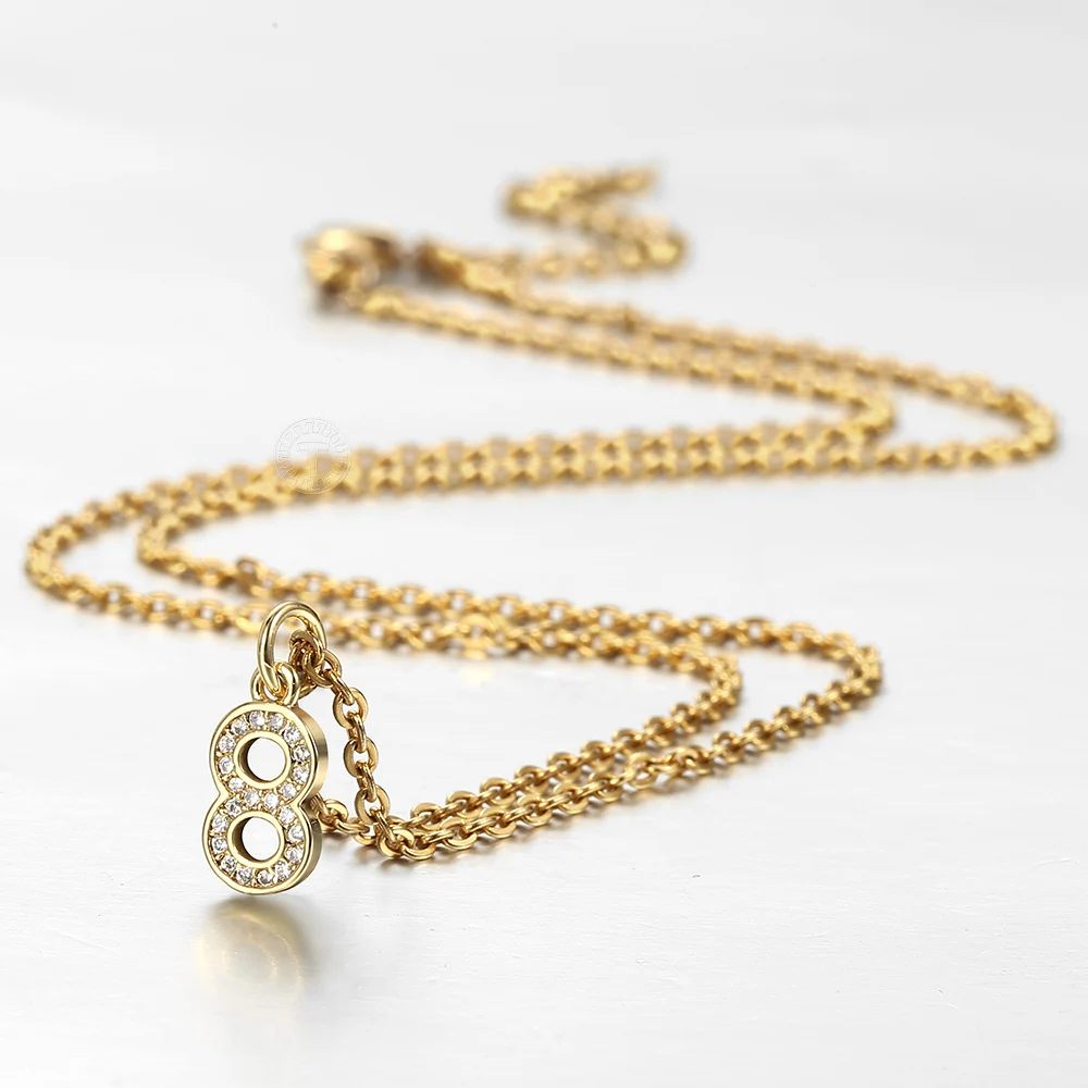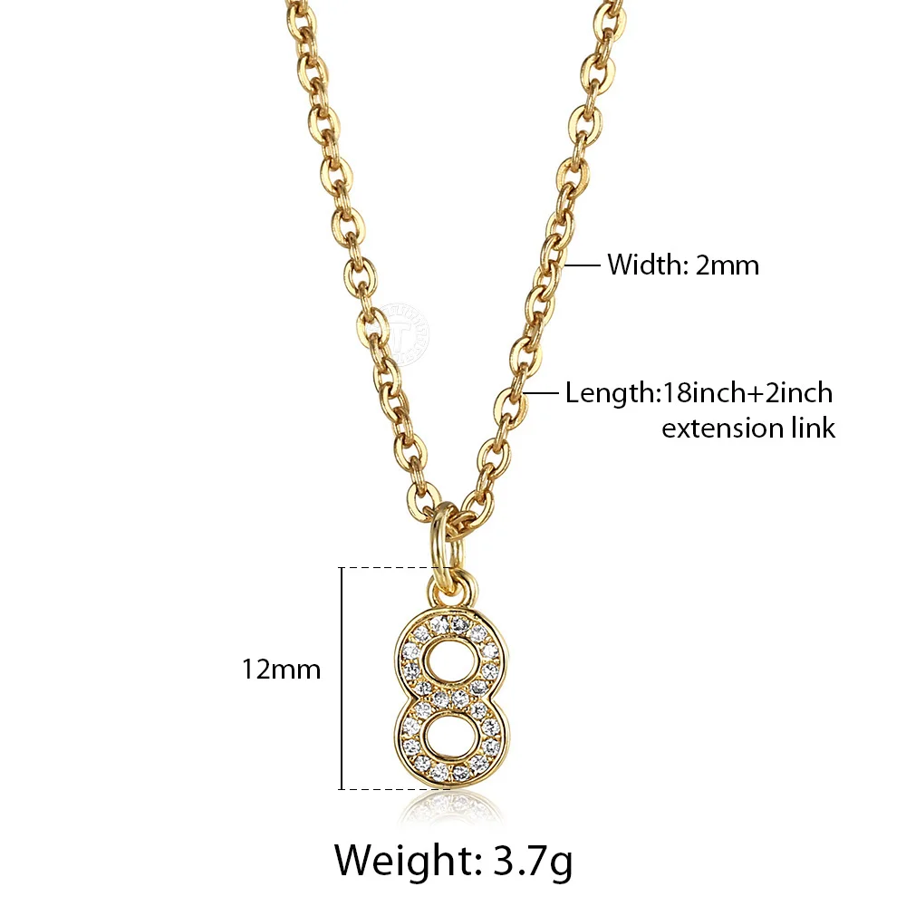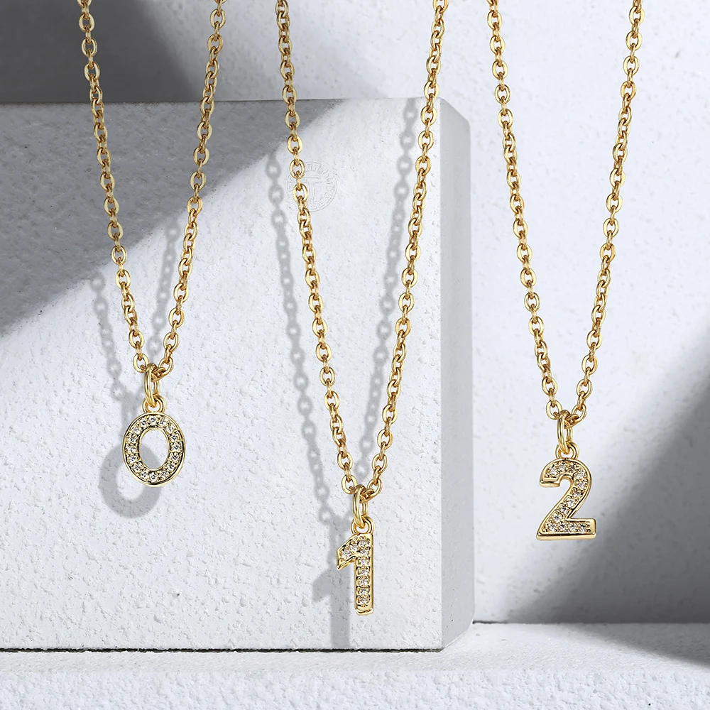 Изящная миниатюрная Милая подвеска-цифра 0, 1, 2, 3, 4, 5, 6, 7, 8, 9 с фианитами на удачу, ожерелье с подвеской на день рождения, регулируемая цепочка Rolo KN652