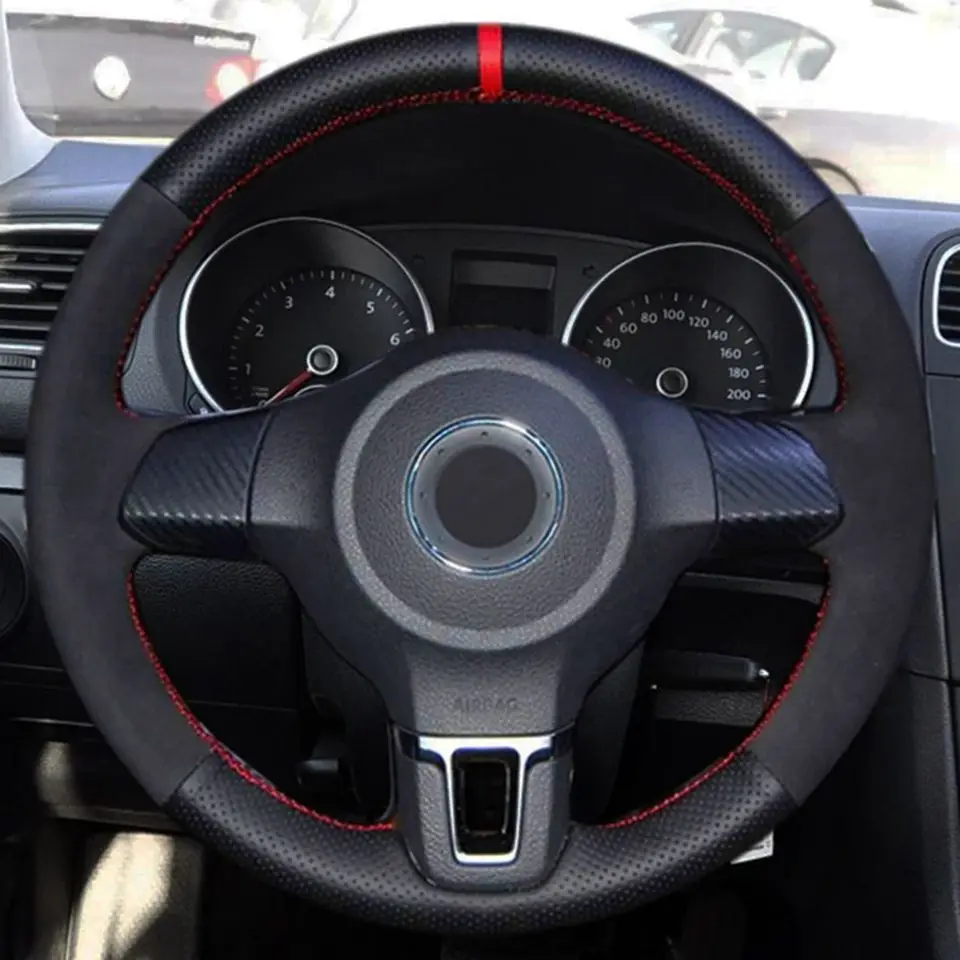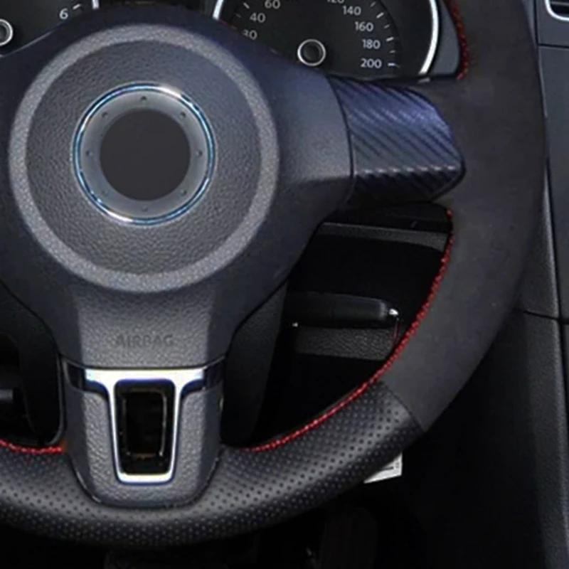 Чехол рулевого колеса автомобиля черная натуральная кожа замша для Volkswagen Golf 6 Mk6 VW Polo Sagitar Bora Santana Jetta MK5
