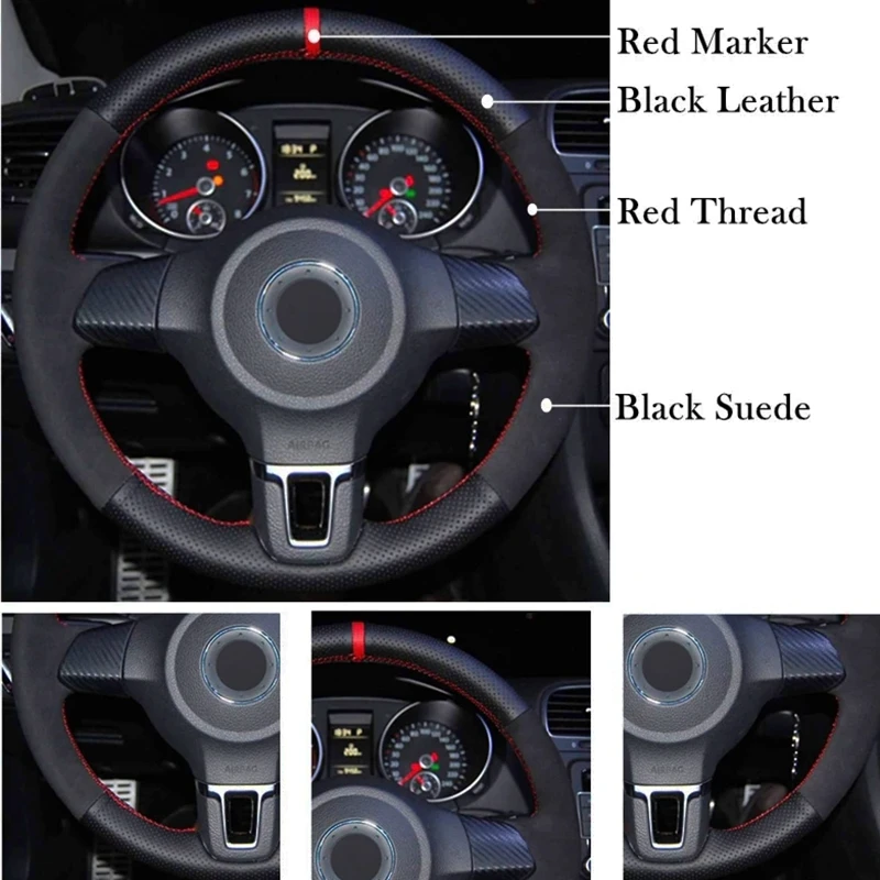 Сшитый вручную черный замшевый красный маркер Чехлы рулевого колеса...