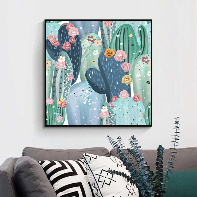 Плакаты и принты больших тропических растений, настенная Картина на холсте с изображением кактуса, цветов, минималистичное нордическое украшение для дома