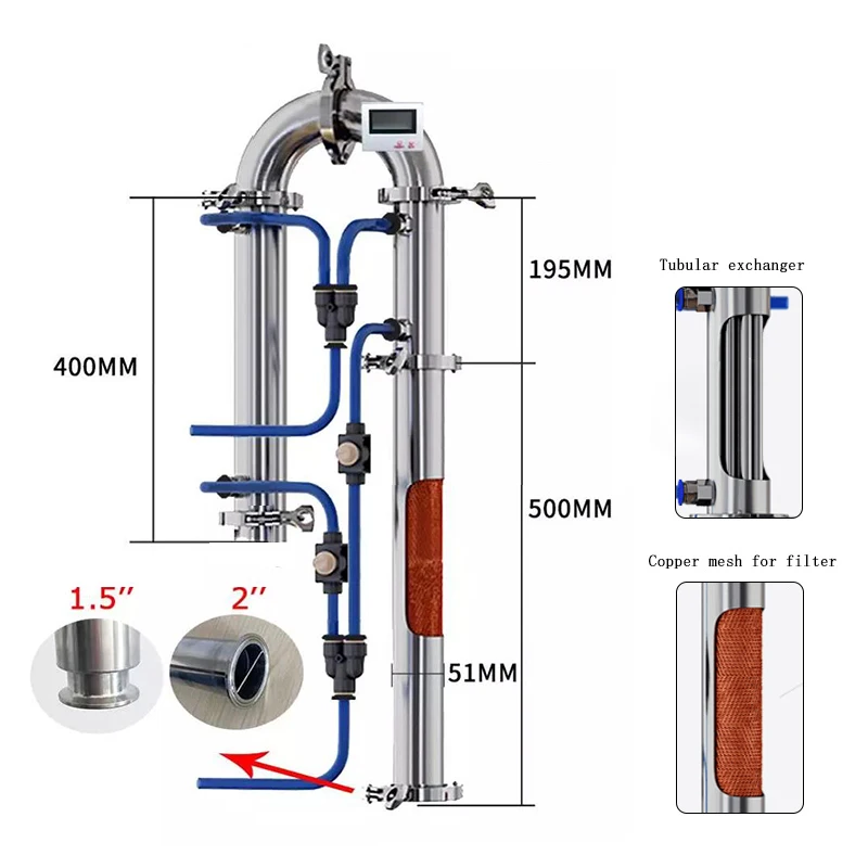 Трубчатая дистилляционная башня для спиртных напитков, бренди, виски, водки, самогона и оборудования с медной сеткой 1,5 дюйма, 2 дюйма