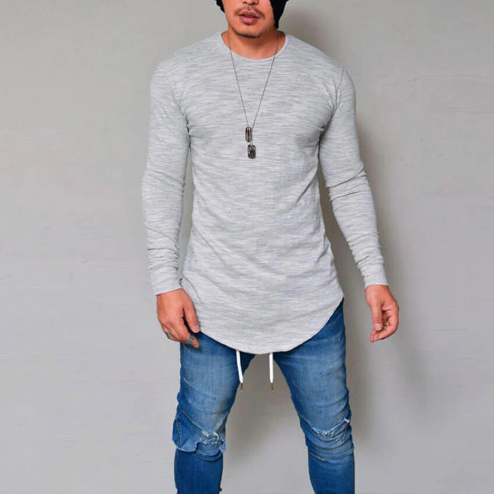 Сезон весна-осень; 2020 футболка с круглым воротником для отдыха Однотонная одежда с длинным рукавом Уличная забавная футболка с длинным рукавом для мужчин