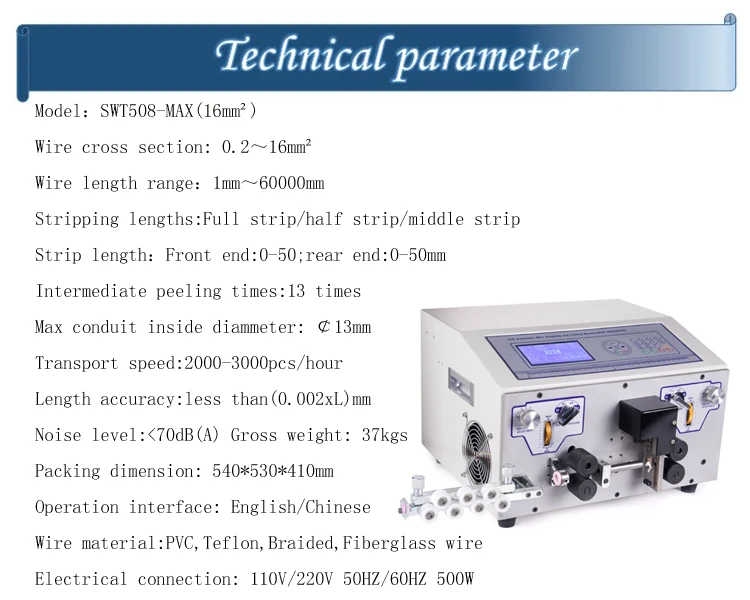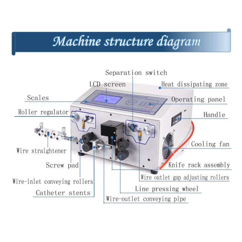 Наш продукт предназначен для использования в режиме общения с человеком-машиной с ЖК-экраном, с приятным внешним видом, простой работой, удобным обслуживанием, стабильной производительностью, скоростью, точностью и более высокими основными функциями. Длина провода может установить произвольные, thrum и параметры конца линии также могут в соответствии с запросом клиента изменить, различная степень отделки зачистки проводов, также имеет линию высокого напряжения линии, корпус ножниц и т. Д.