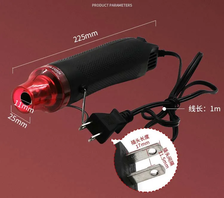 -После завершения, используйте тепловой пистолет при высокой температуре, чтобы выдуть несколько минут,