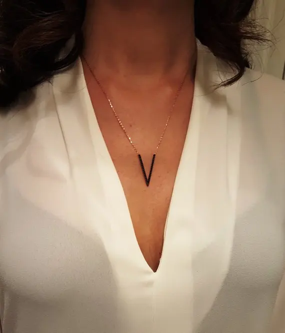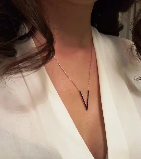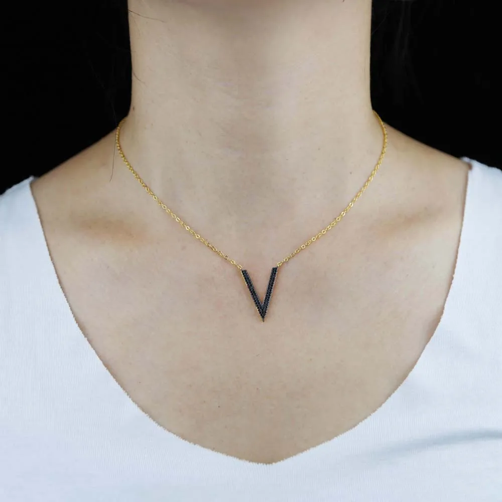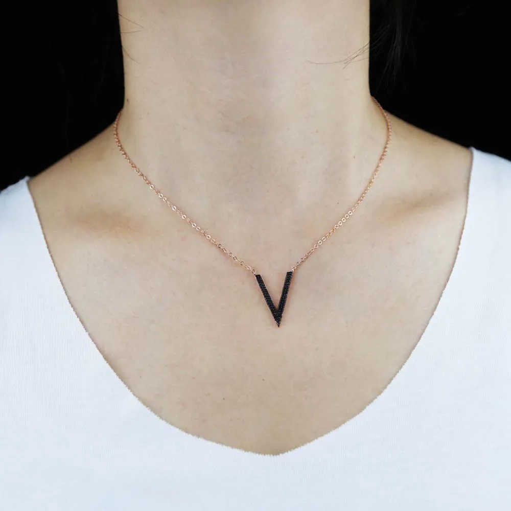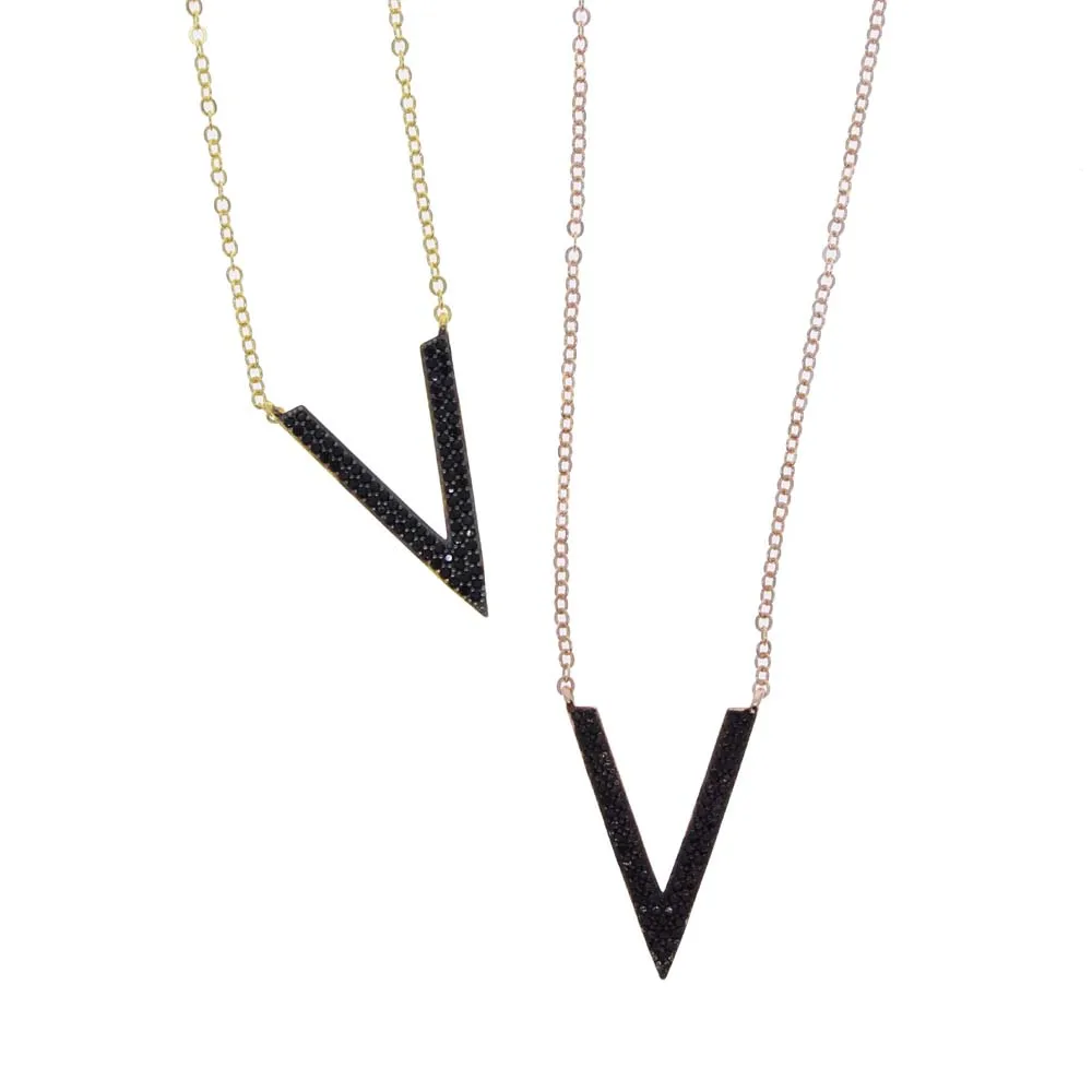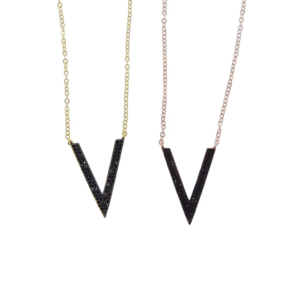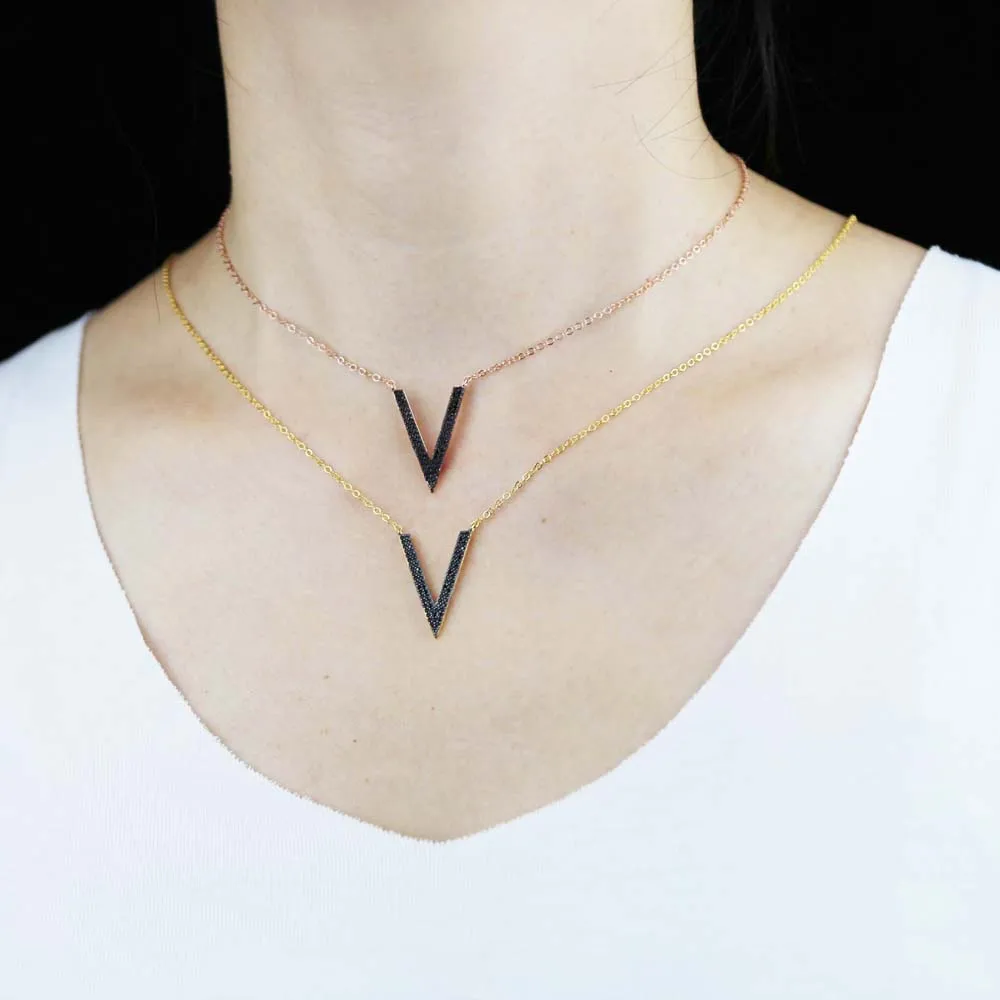 Микро проложить Черный Cz кубический цирконий V шеврон ожерелье с подвеской в виде тонкой 100% 925 стерлингового серебра для женщин и девочек Колье цепи