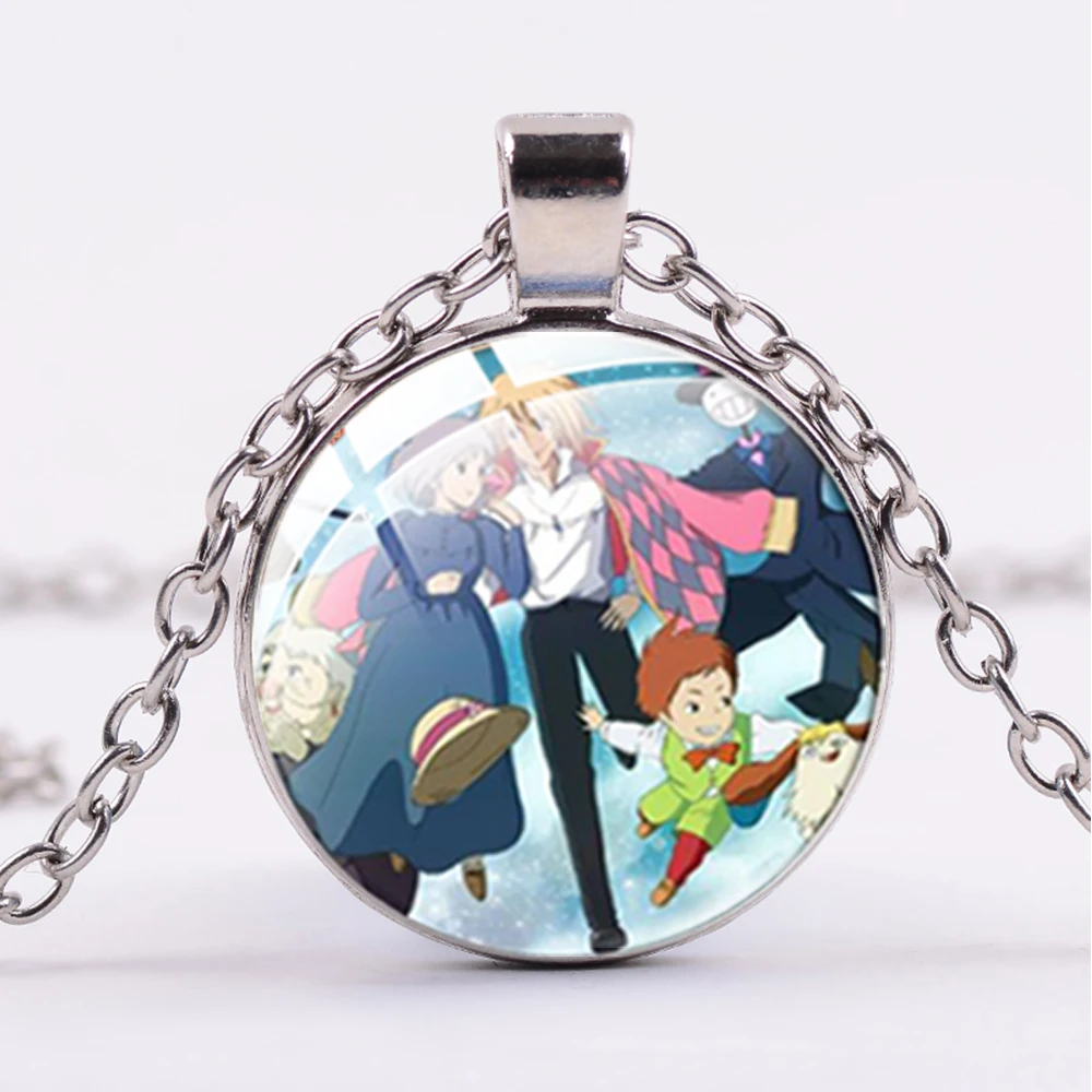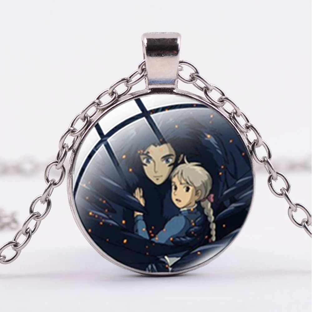 Новое ожерелье с подвижным замком Хаяо Миядзаки, классический мультфильм, узор по фильму стеклянный кабошон, ожерелье, ювелирные изделия ручной работы