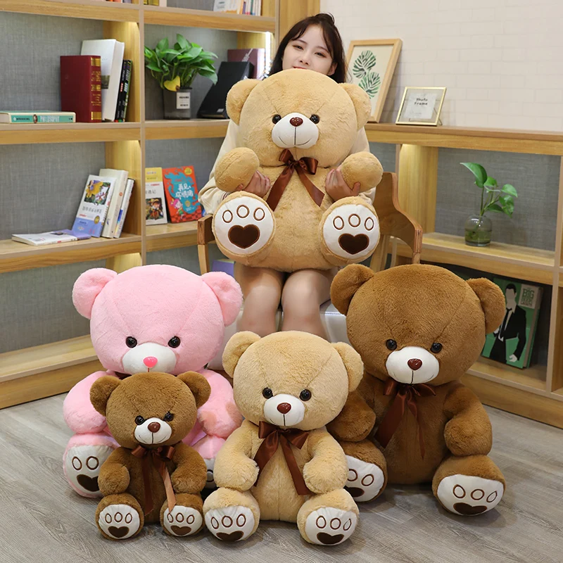 Милая кукла-мишка тедди с бантиком, набивные Плюшевые игрушки-животные, 5 цветов, 355060 см, подарок для любимых девочек на день рождения