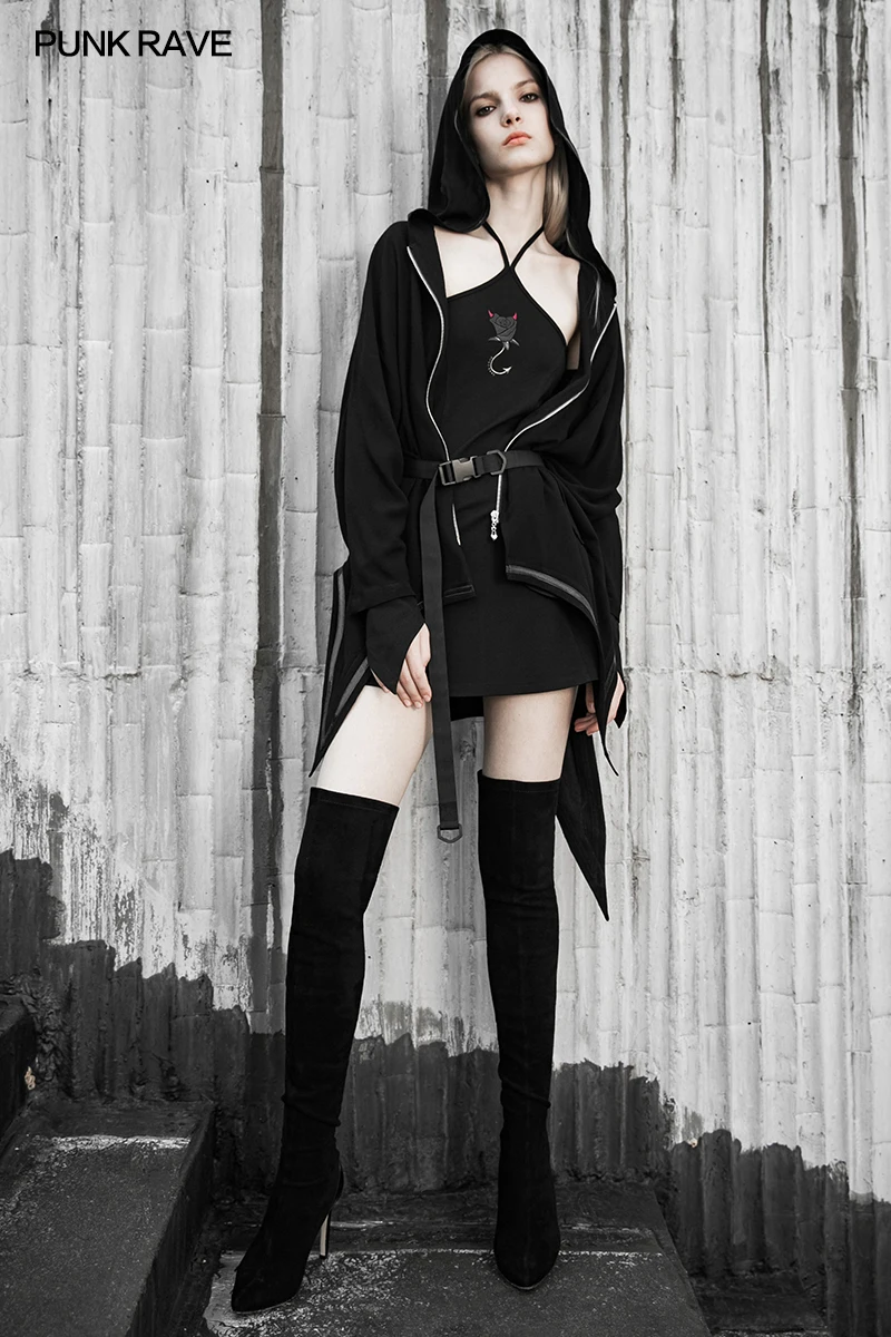 Женское готическое повседневное Свободное пальто в стиле Панк RAVE, свободное удобное длинное пальто с асимметричным подолом и металлическими элементами в стиле панк