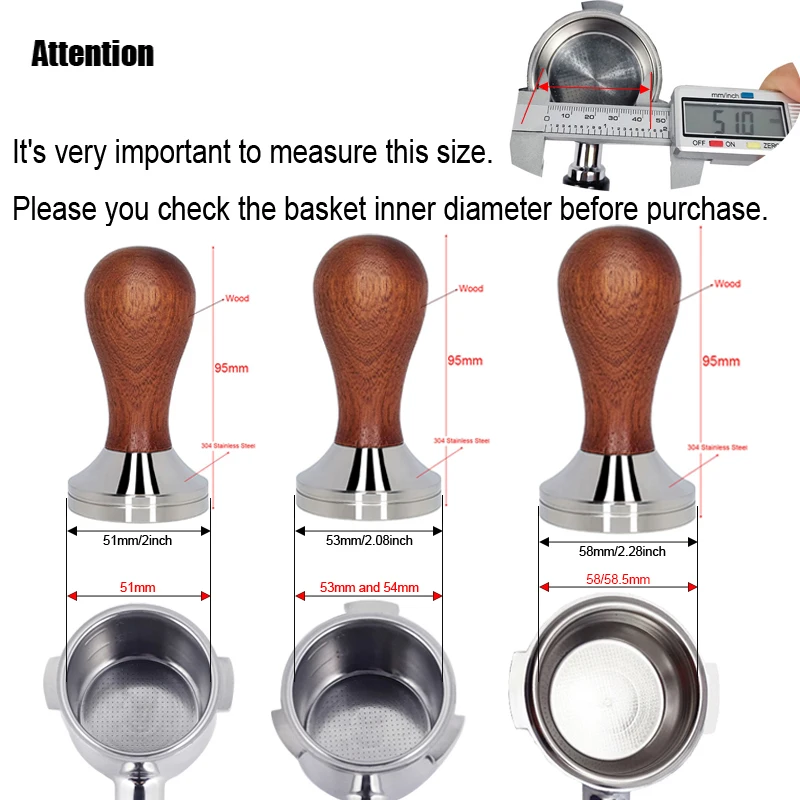 Темпер для кофе, с основанием из нержавеющей стали 304 и ручкой из массива дерева, калиброванный Темпер, 515358 мм