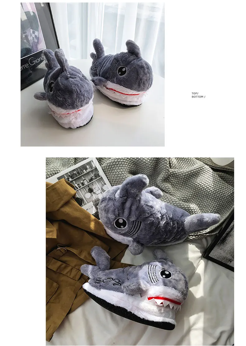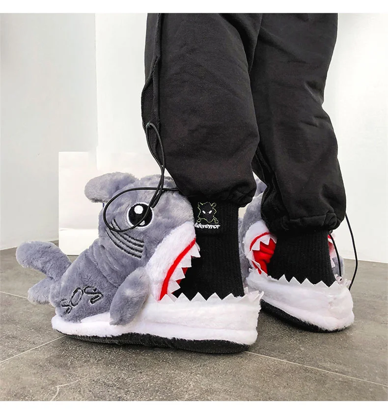 Зимние Нескользящие домашние тапочки с рисунками животных; Мужские и детские тапочки «акулы»; Домашние тапочки для мальчиков; Плюшевые тапочки; sandalias hombre