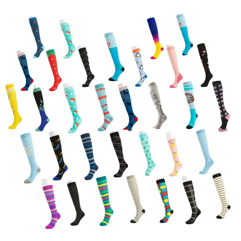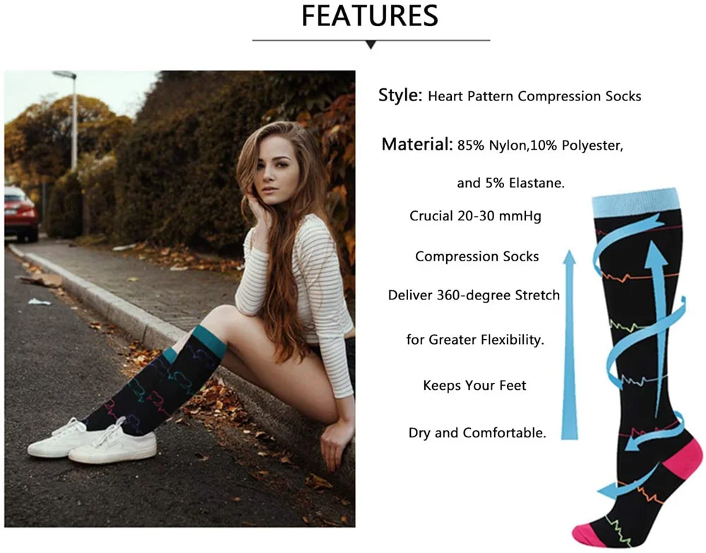 Вы все еще носите такие же старые однотонные цвета? У нас есть широкий выбор забавных цветов и уникальный дизайн узора! Они добавят оттенок к вашей обычной жизни. Быть модным и уникальным с нашими продуктами! Вы получаете удивительное предложение, чтобы ваши ноги оставались с оптимальным сжатием все время (см. 7-е изображение для Таблицы размеров)!