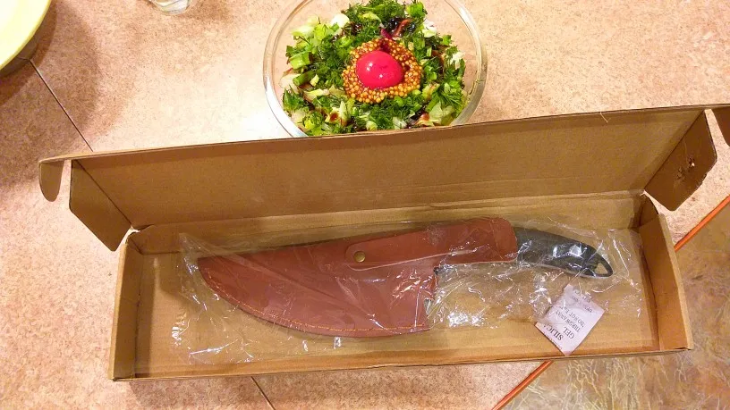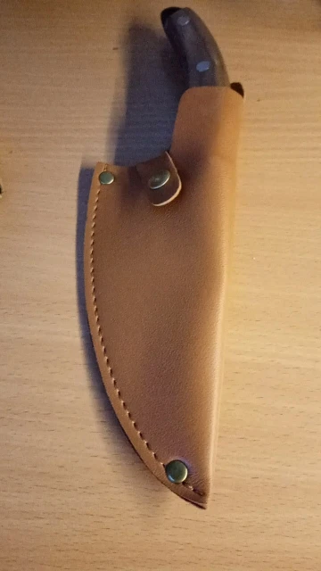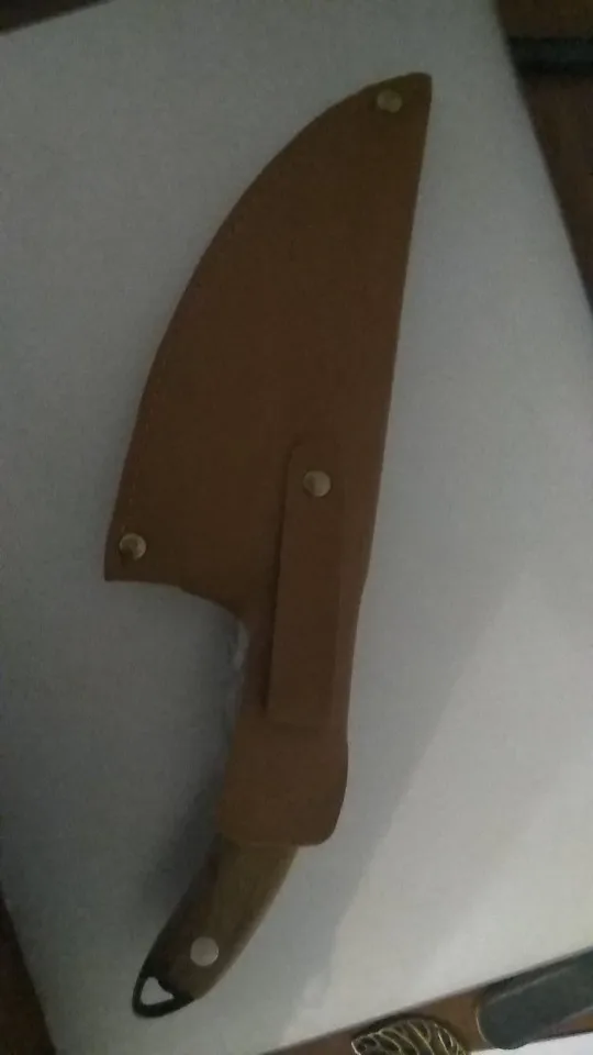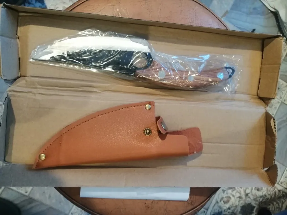 Очень красивый кухонный нож с его настоящим кожаным чехлом. Отделка Рукава отличная, с другой стороны, лезвие, которое мне нравится меньше всего. В целом это очень хорошая книга. Получено примерно через 3 недели в коробке, поэтому хорошо защищено