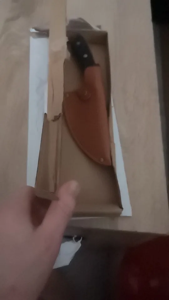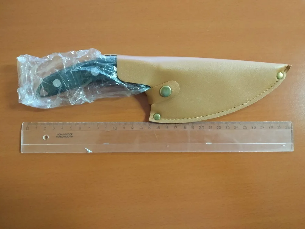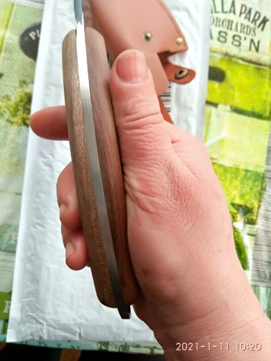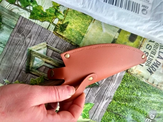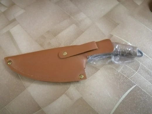 вот и я стала счастливым обладателем прекрасного ножа.случайно увидела распродажу этого товара за монеты,да и ещё и с огромной скидкой.Куплен 20.11.20года за 383рубля.Я и не могла предположить,что нож прийдёт ( спустя 1.5 месяца)с чехлом.Первое впечатление было,что чехол выполнен из кожи...да,я так на видео и говорю,с кожи.Но это кожзаменитель.Сам нож доставлен был фирмой СДЭК ,предварительно связались со мной через Ватсапп и уточнили время и день доставки товара.Запакован нож был в картонную коробку.Она ,конечно помялась,но на самом товаре ,это никак не отразилось.хороший нож, тяжёлый.ручка выполнена с дерева.спасибо большое продавцу за качественный товар и быструю отправку товара.рекомендую.