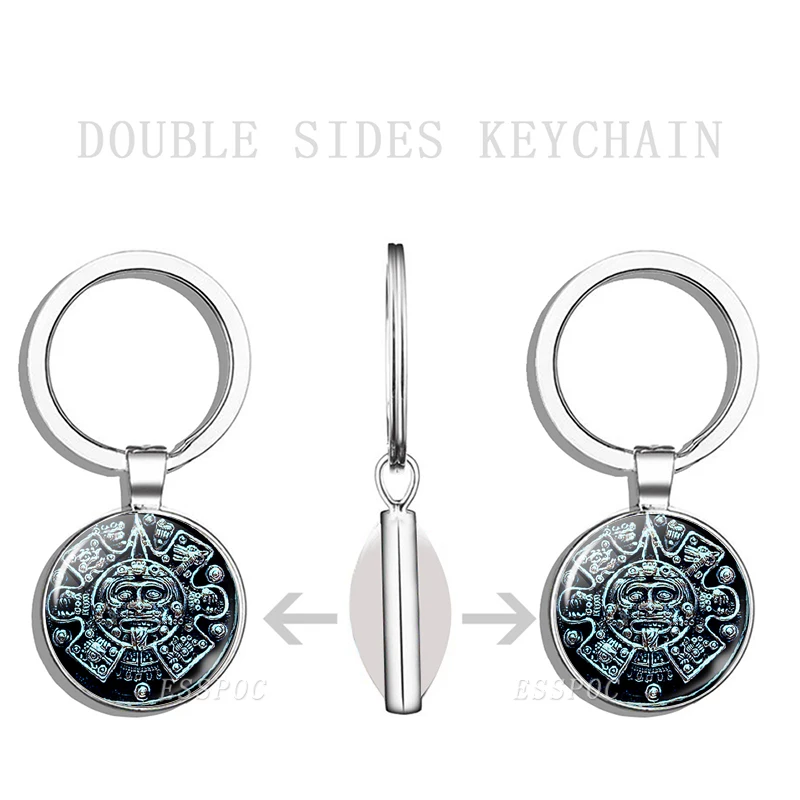 Майя в ацтекском стиле брелок-календарь Двусторонняя Стекло кабошон мексиканский календарь, логотипы марок машин, брелок для ключей, автомобильные аксессуары, брелок для автомобиля цепочка, ювелирное изделие, подарок