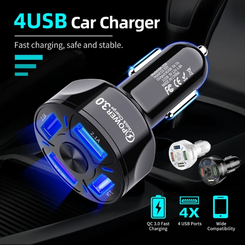 Автомобильное зарядное устройство с 4 USB-портами, быстрая зарядка ...