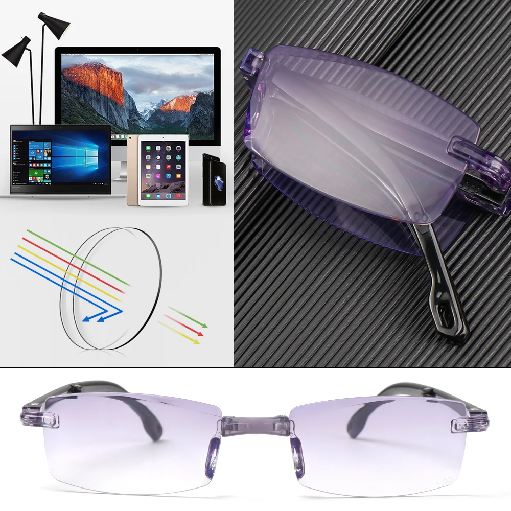Очки для чтения Унисекс Складные, с чехлом, металлическая оправа, + 1,0 + 4,0