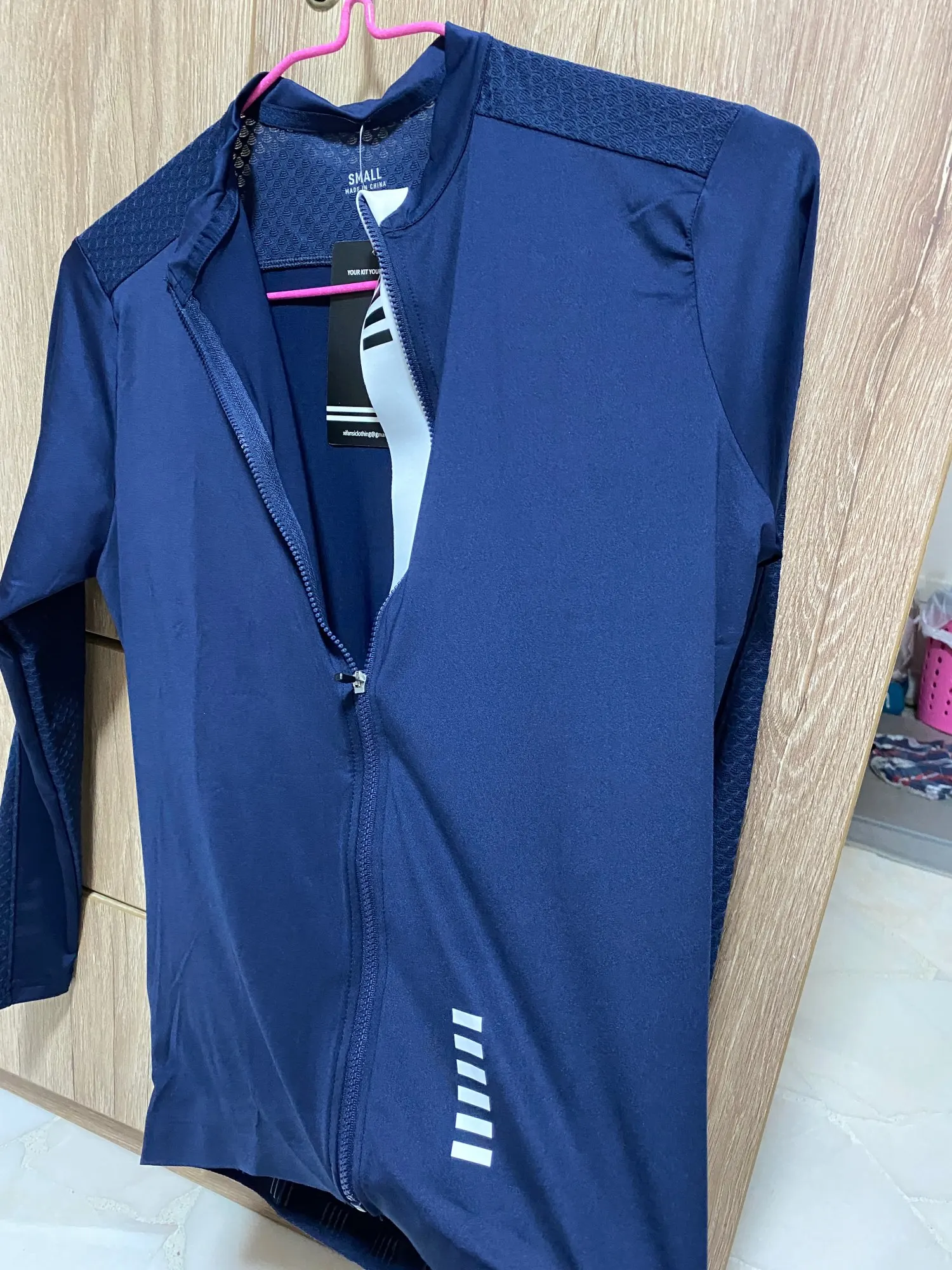Размер Джерси L (рост 183), рукава слишком короткие, крой не подходит для езды на велосипеде, слишком много материала там, где он не нужен и слишком меньше на рукавах. Качество материала хорошее, пошив кажется нормальным. Транспортировка влаги еще не протестирована