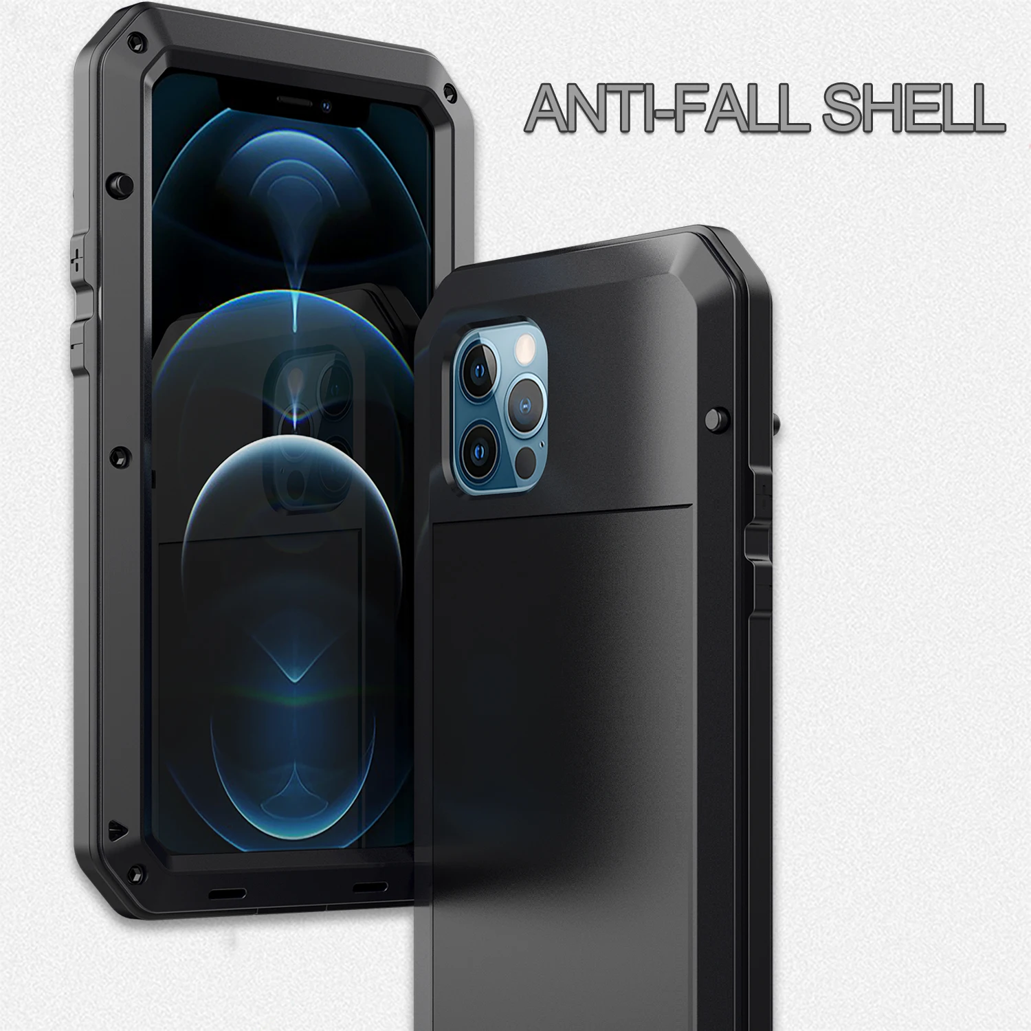 Противоударный чехол для iPhone 12 Pro maxiPhone 12 miniiPhone 12 pro, закаленное стекло + металлическая алюминиевая броня