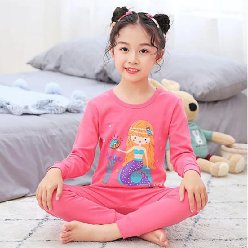 Пижама с длинным рукавом для мальчиков и девочек, комплект хлопковой одежды для сна, одежда для детей 2, 4, 6, 8, 10, 12 лет, Осень-зима
