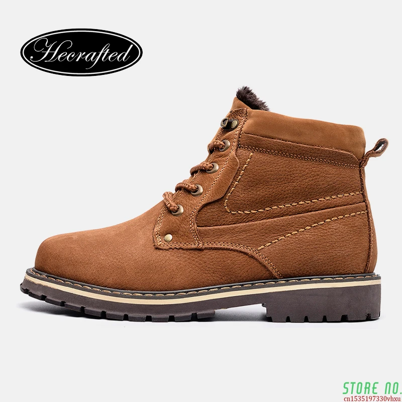 Мужские зимние ботинки из натуральной кожи ручной работы, Теплая му...