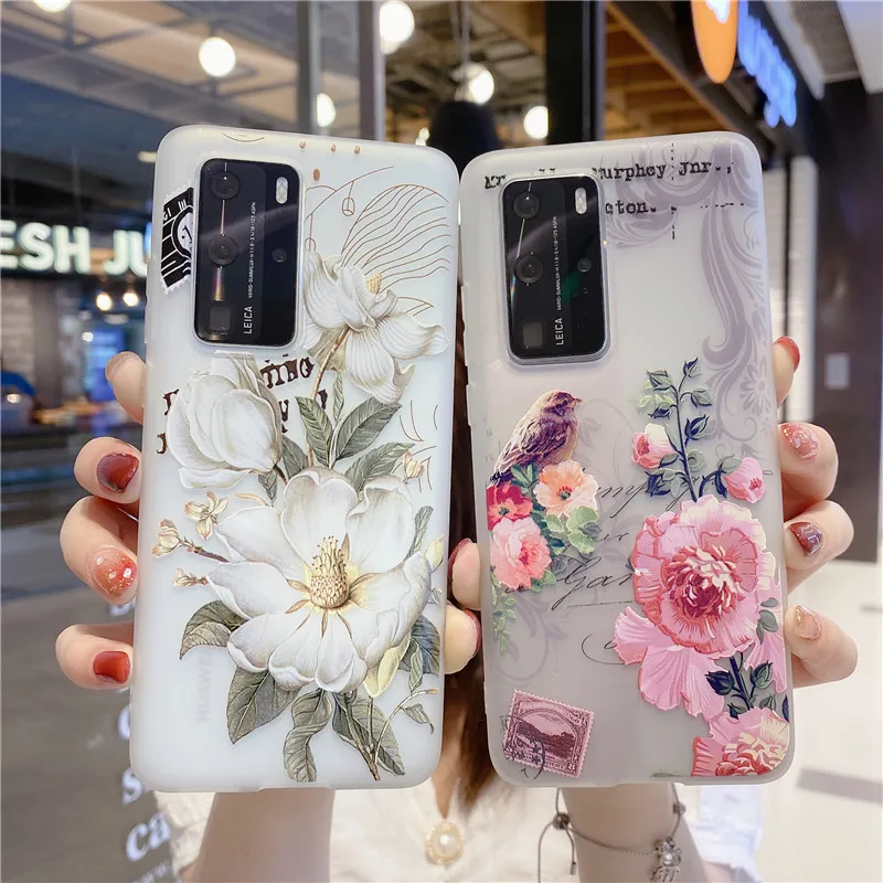 Рельефный мягкий чехол из ТПУ с цветами для Huawei Mate 30 20 Pro Nova 7i 5T Y7P Y8S P40 Lite E P20 P30 Pro, прозрачный чехол