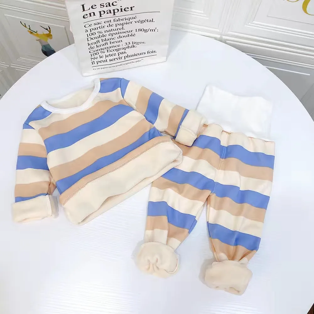 Бархатные пижамные комплекты в полоску для мамы и дочки, Susy, для маленьких мальчиков и девочек зимняя теплая одежда для сна для малышей, домашняя одежда для малышей 2 предмета, одежда для малышей, От 1 до 5 лет