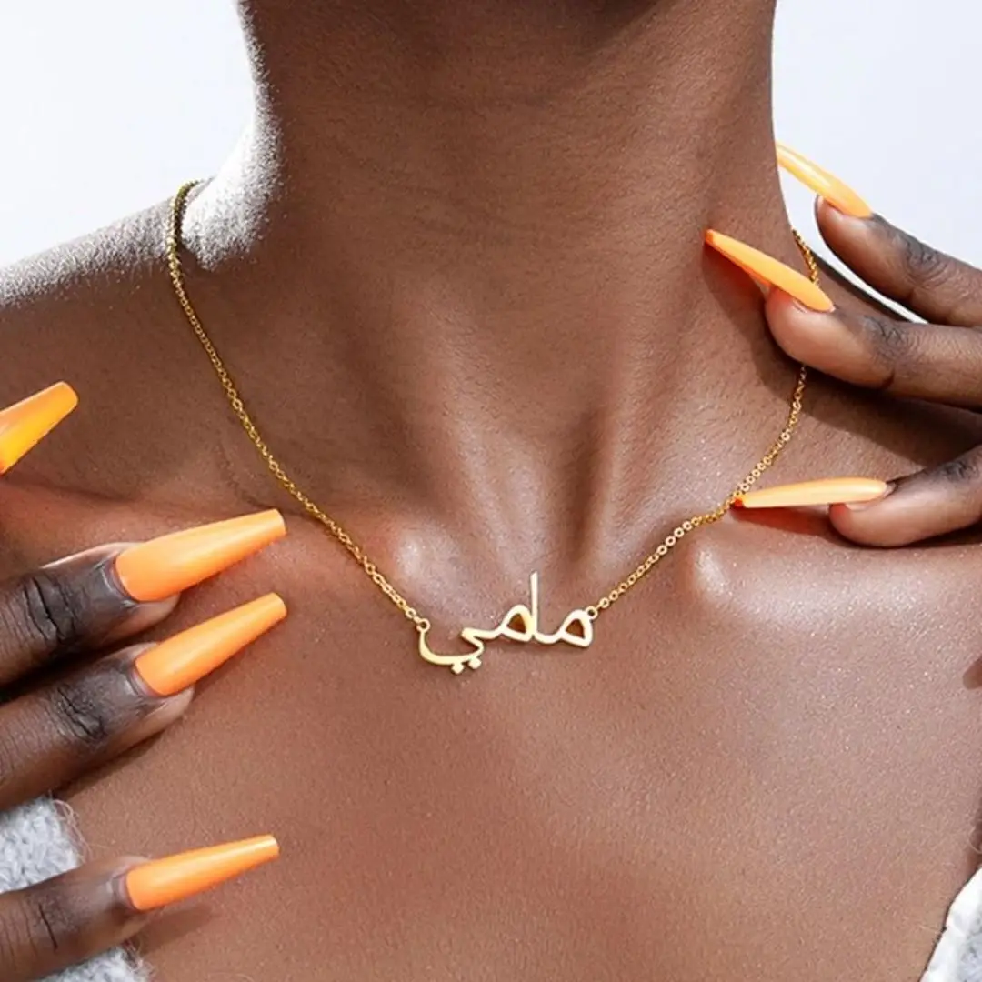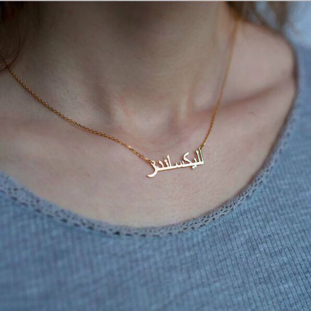 Индивидуальное арабское ожерелье на заказ, арабские ожерелья с именем, Золотая Исламская табличка для женщин, очаровательные ювелирные изделия из нержавеющей стали, подарок