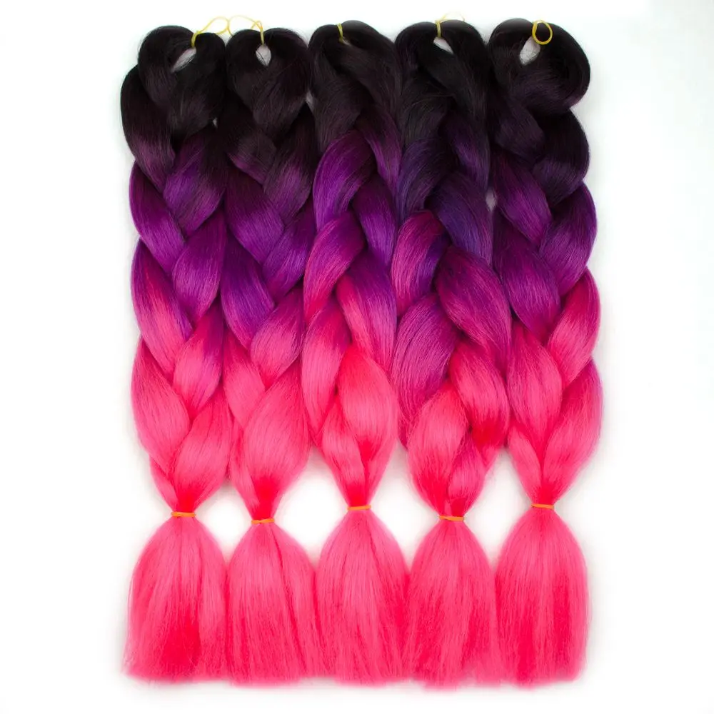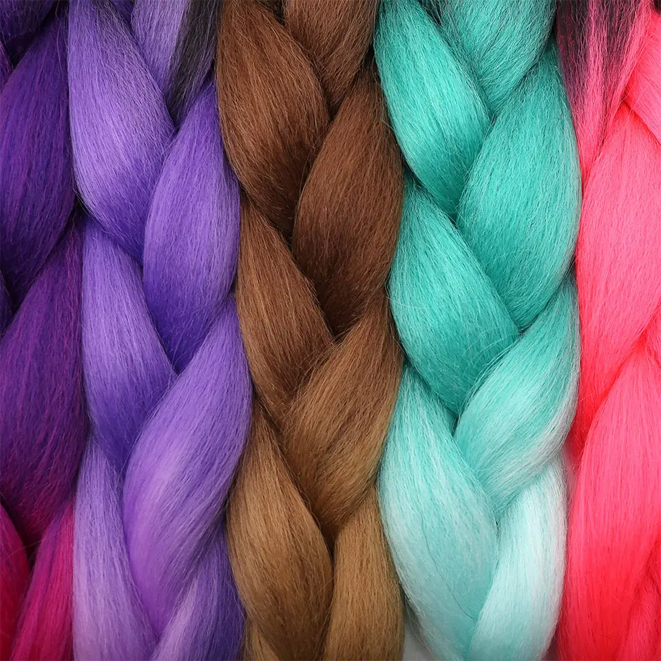 Волосы для наращивания, 24 дюйма, синтетические косички Радуга, цвет Омбре, зеленый, розовый, желтый блонд