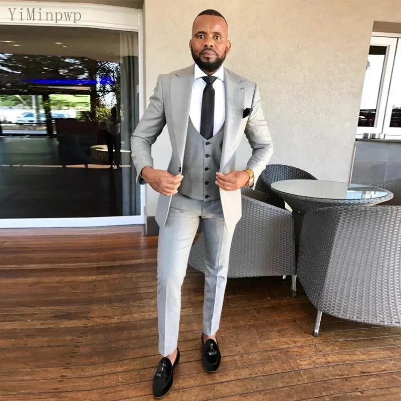 YiMinpwp светильник-серый мужской костюм с заостренным отворотом на одной пуговице официальные свадебные костюмы костюм брак Мужской Блейзер Куртка мужские смокинги для жениха