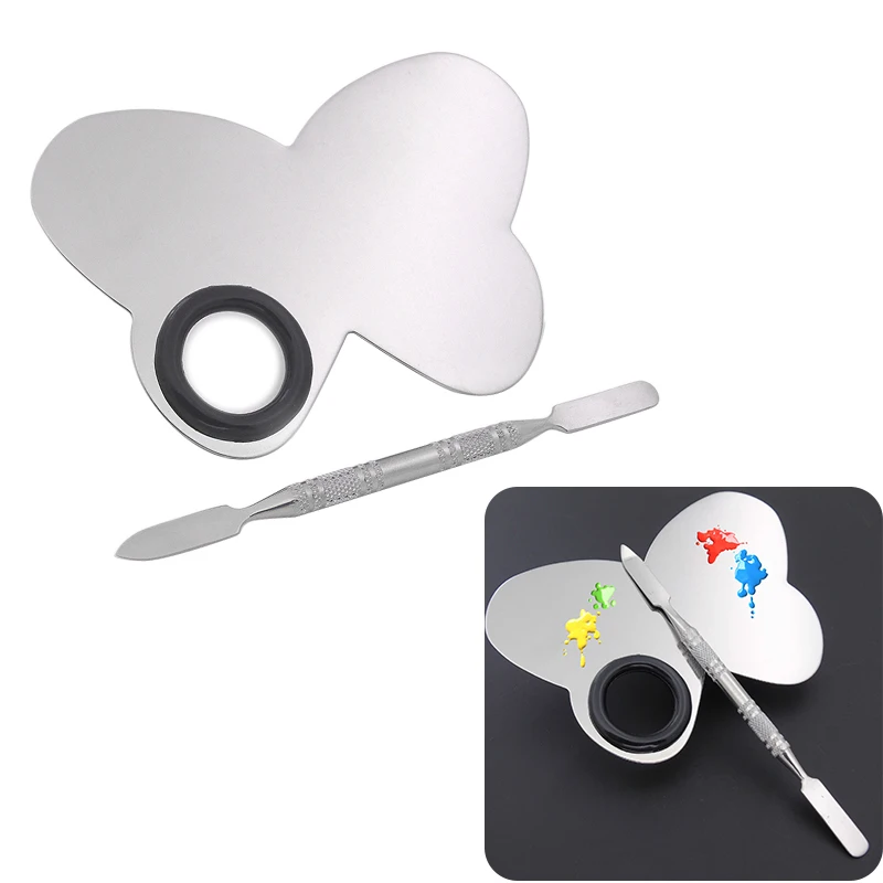 1 шт. Красота инструменты Цвет смесительные пластины шпатель Нержавеющаясталь бабочка Форма польский Крем Палитра основой для маникюра Дисплей