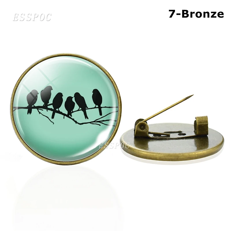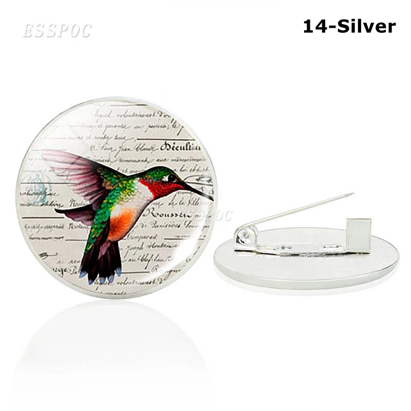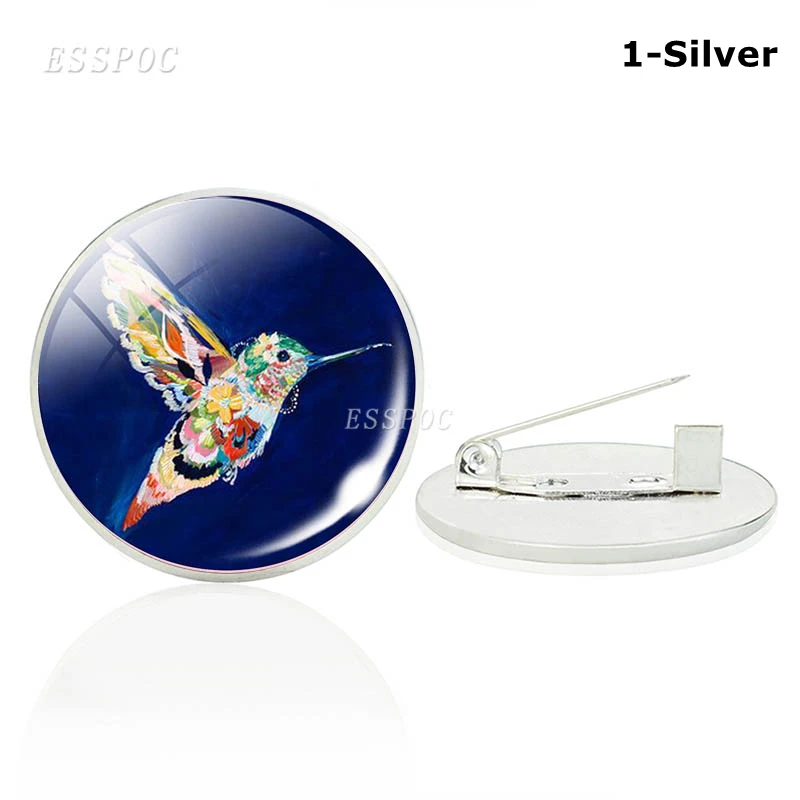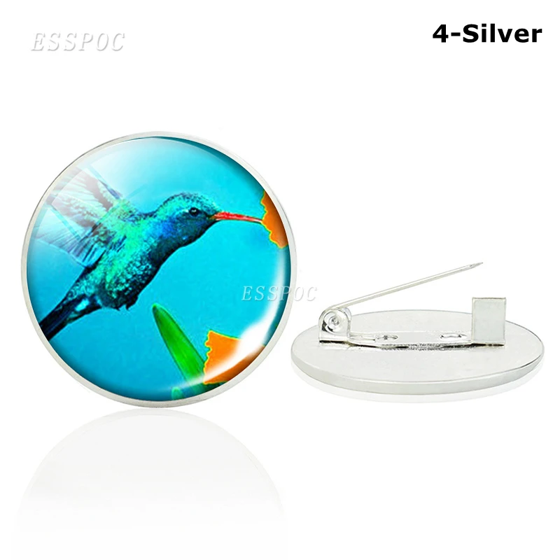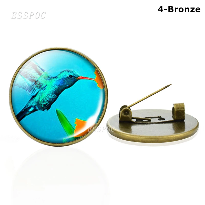 Брошь в виде симпатичной птицы, стеклянный кабошон бронзовогосеребряного цвета, эмблема Колибри, ювелирные изделия, одежда, маленькие аксессуары, подарки для любителей животных