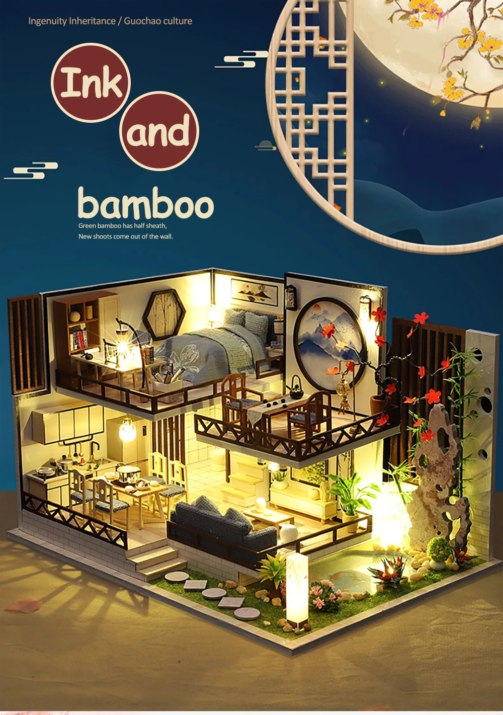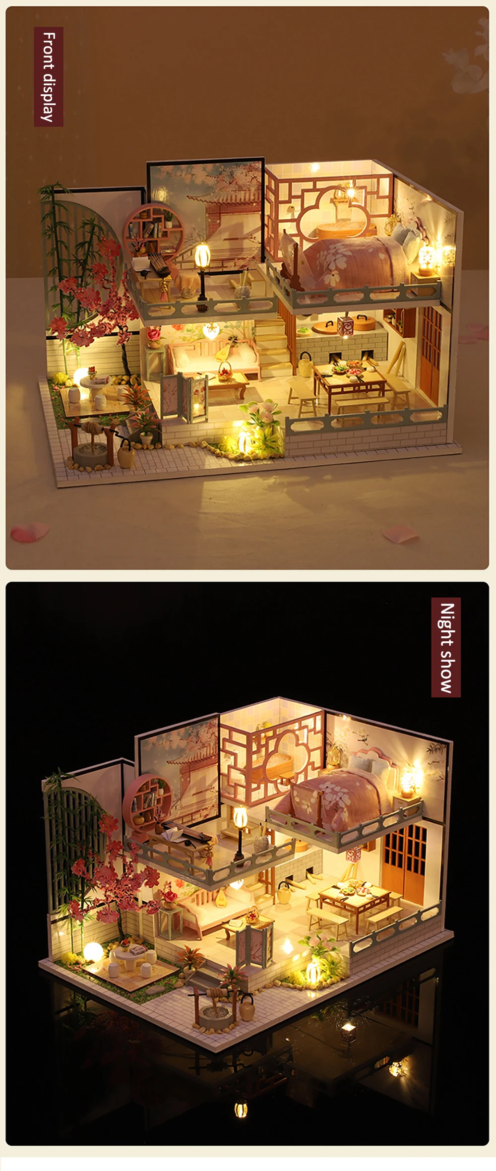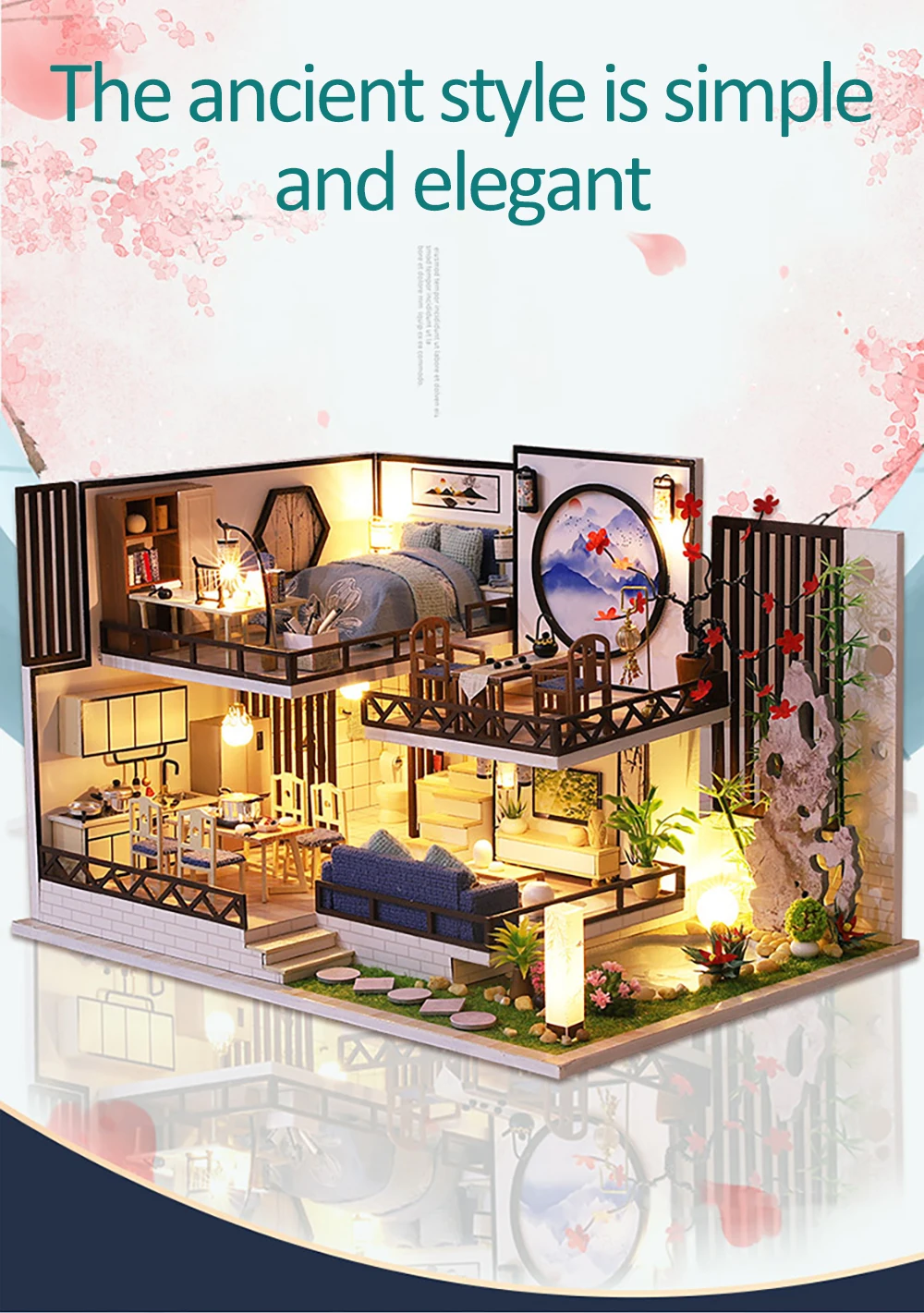 Набор кукольного домика сделай сам, миниатюрный дом для кукол, мебель в китайском стиле, Сборная модель, деревянный мини-дом, детская игрушка, подарок на день рождения
