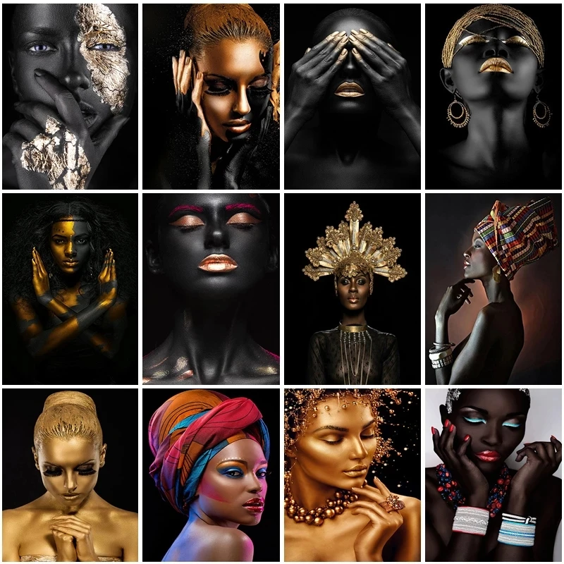 Картины на стену в скандинавском стиле, настенные постеры с африканскими искусствами черного и золотого цвета, декор для гостиной