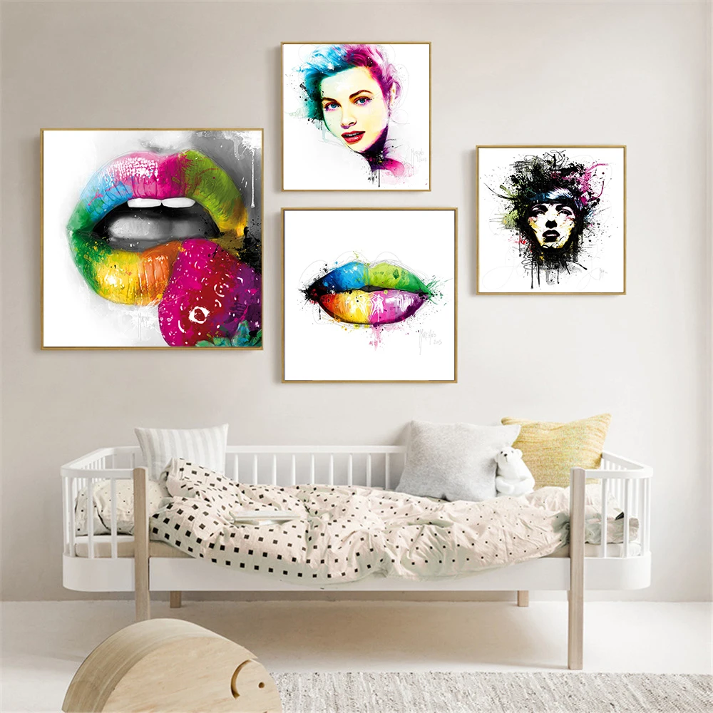 Новая абстрактная масляная живопись Череп поп-арт модная женская обувь на высоком каблуке губы Murciano девушка стена искусство холст печать Куадрос индийский