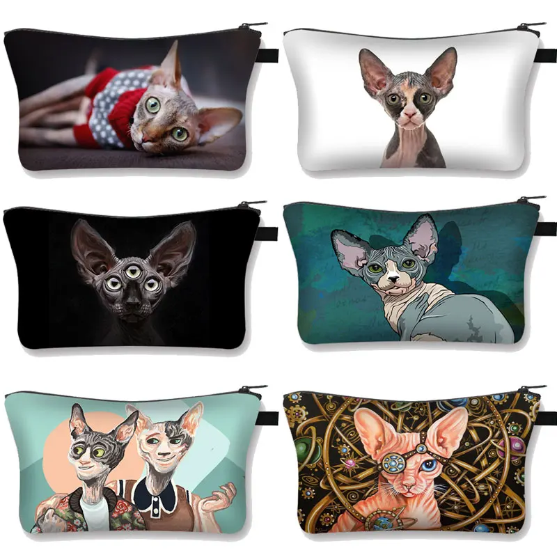 Женская косметичка с милым котом и животным принтом, дамская сумочк...