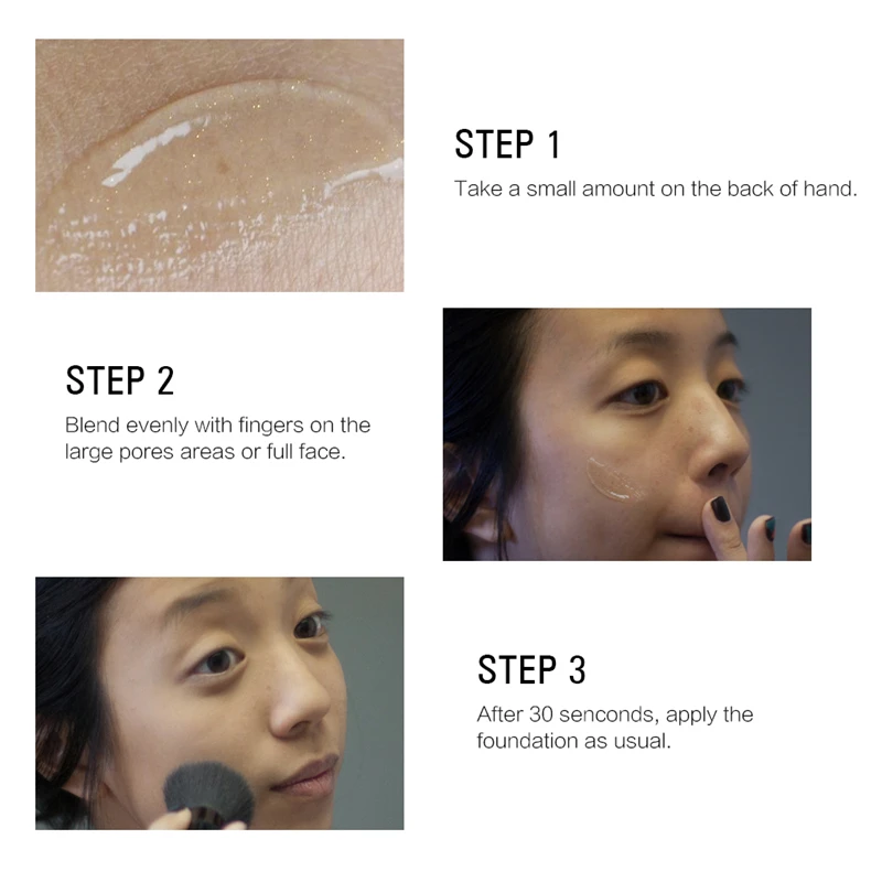 3. Обогащенный уникальной прозрачной силиконовой гелевой основой, витамин А, С и Е, пора минимизирует грунтовку основы помогает предотвратить потерю гидратации в течение дня, что делает кожу молодой и свежей.Характеристика: