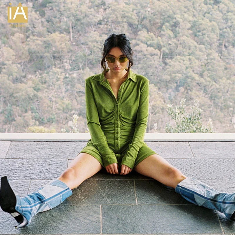 Женское платье со складками, Осеннее зеленое пикантное Свободное длинное мини-платье для вечерние и клубов, женское платье