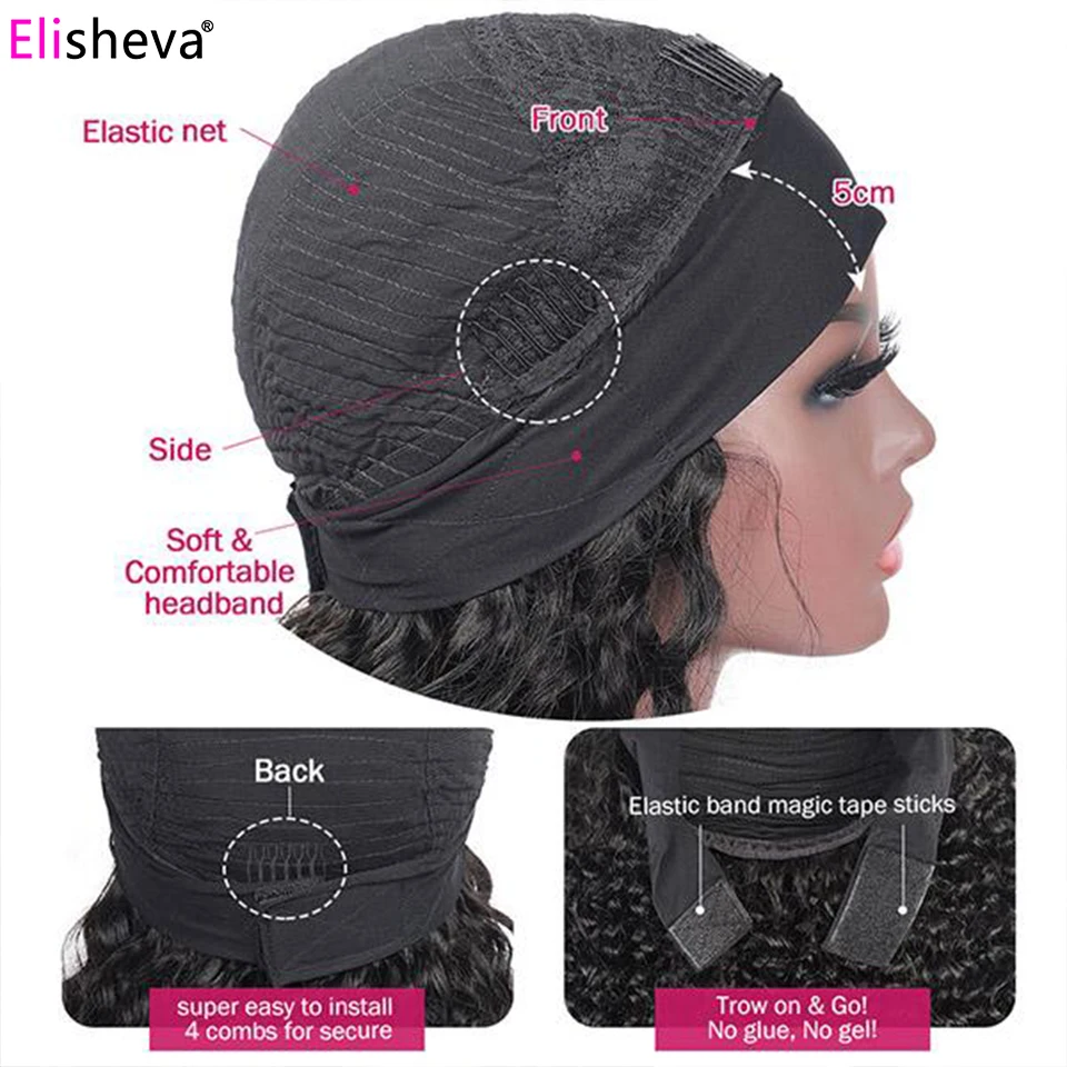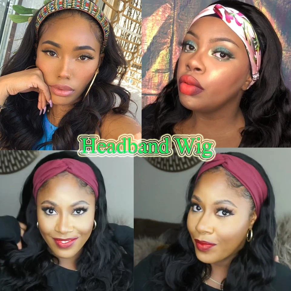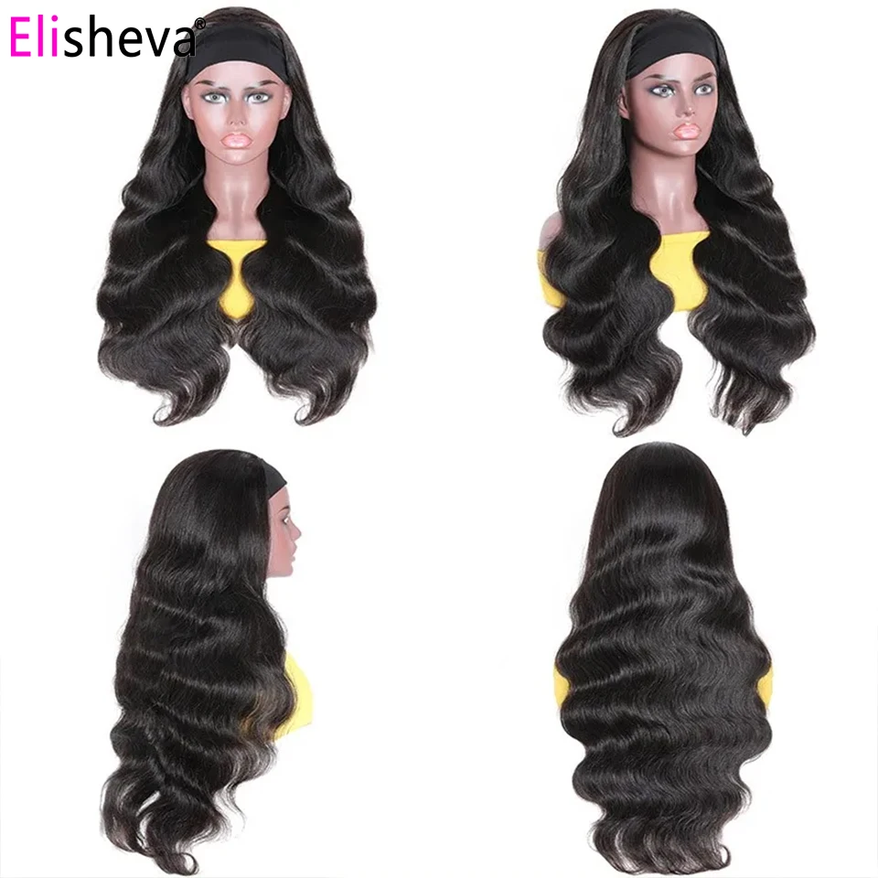 Парик с объемными волнами, парик с головной повязкой бесклеевой парик, шарф, парик с головной повязкой натуральные волосы, полностью машинное изготовление, парики, бразильские волосы Реми