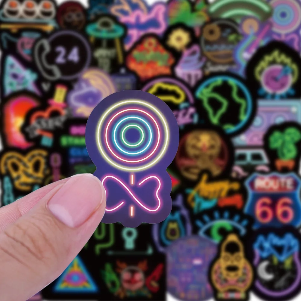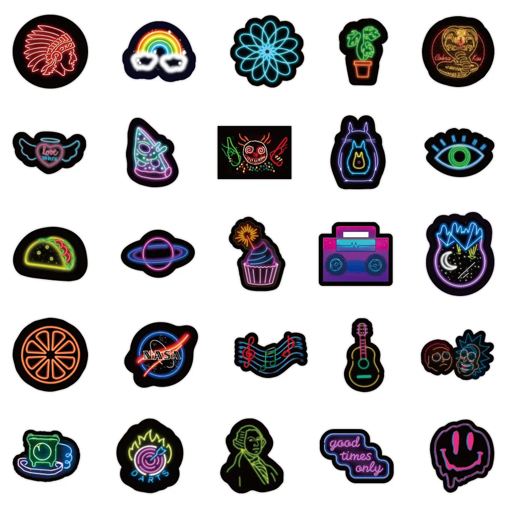 Забавные наклейки с неоновым светом, 103050 шт., чемодан для ноутбука, скейтборд с граффити, на холодильник, наклейки с милыми рисунками, аниме, наклейки, подарок