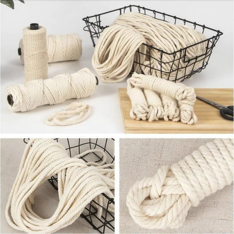 1 мм-10 мм круглый плетеный шнур из натурального хлопка бежевая веревка макраме хлопковый шнур веревка для рукоделия домашние Свадебные аксессуары ручной работы