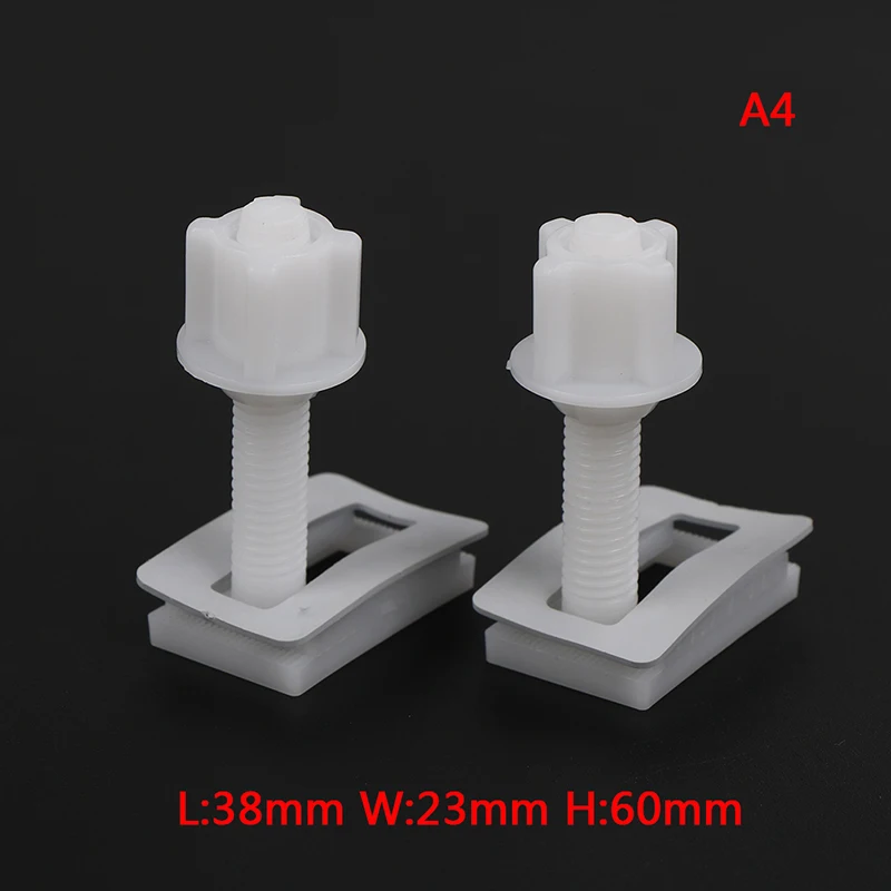 Спецификация:Абсолютно новыйНазвание продукта: винты для унитазаМатериал: полипропиленЦвет: белыйРазмер винта: как показано на рисункеКоличество: 4 шт., 2 пары винтов для ремонта унитаза.Качественный пластик, хорошая прочность, устойчивость к старению.Отличная прочность, не легко ломается, гладкая поверхность.Простая установка, винт укрепляется, менее подвержен скольжению