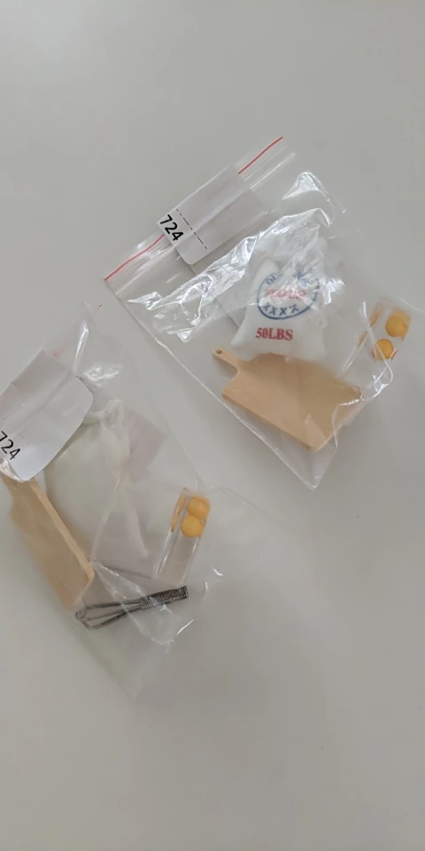 Размеры: муки, мешок для муки, мешок для соли, Скалка, разделочная доска около 45 мм; Устройство для взбивания яиц: 37 мм, яичная миска: 3*2,5 см