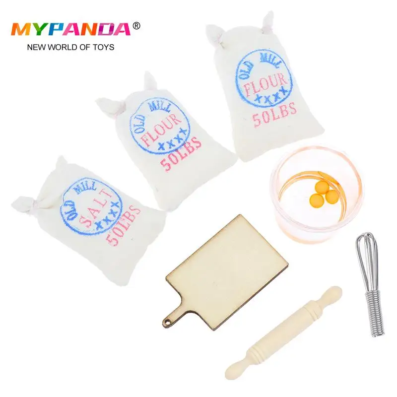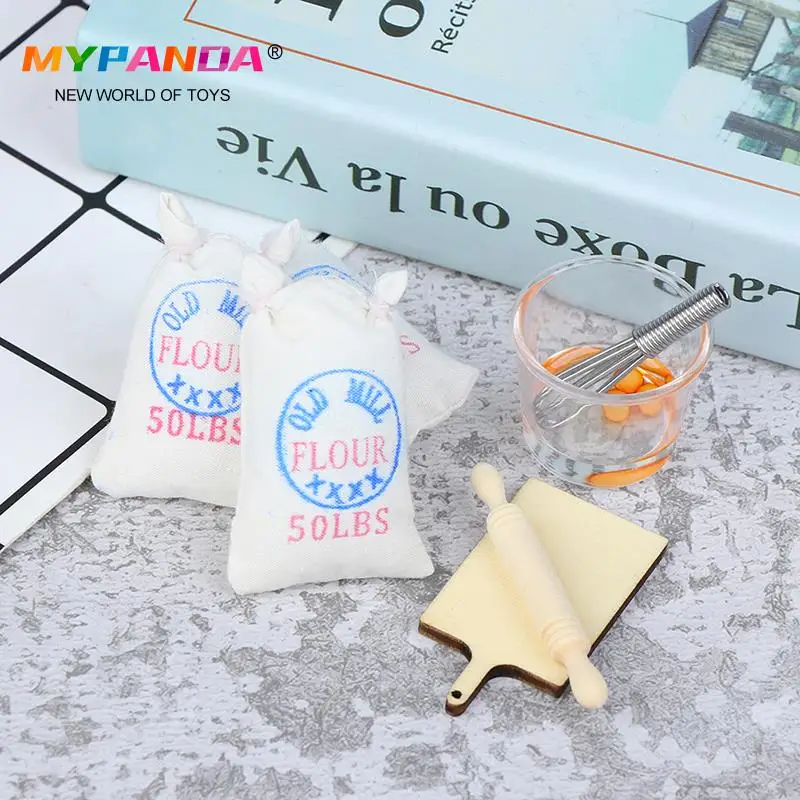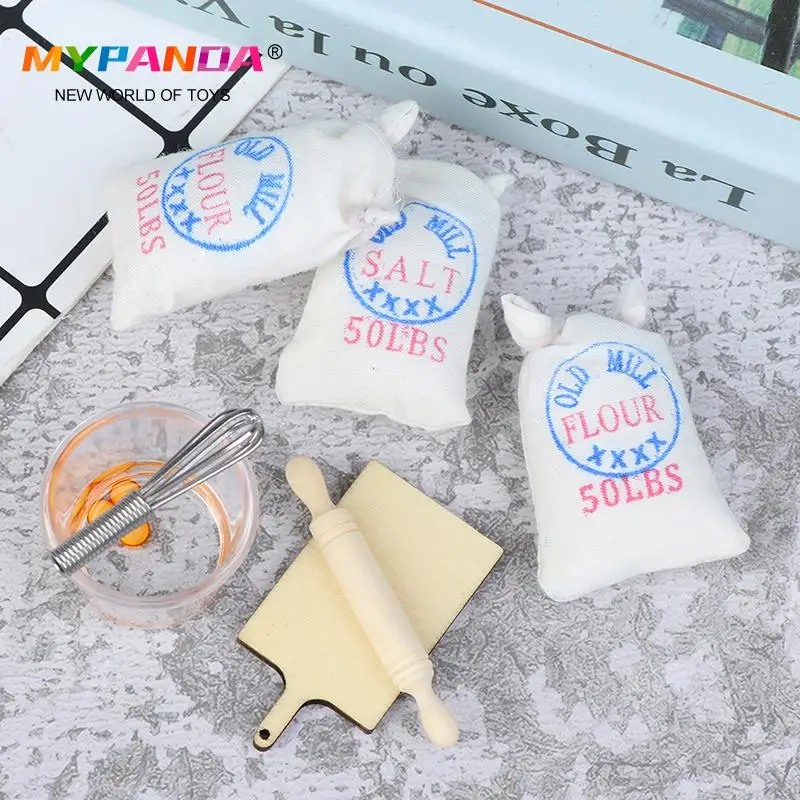 Новые мешки для муки, соли, скалка для яиц, модель кукольного домика, аксессуары 1:12, миниатюрный кукольный домик